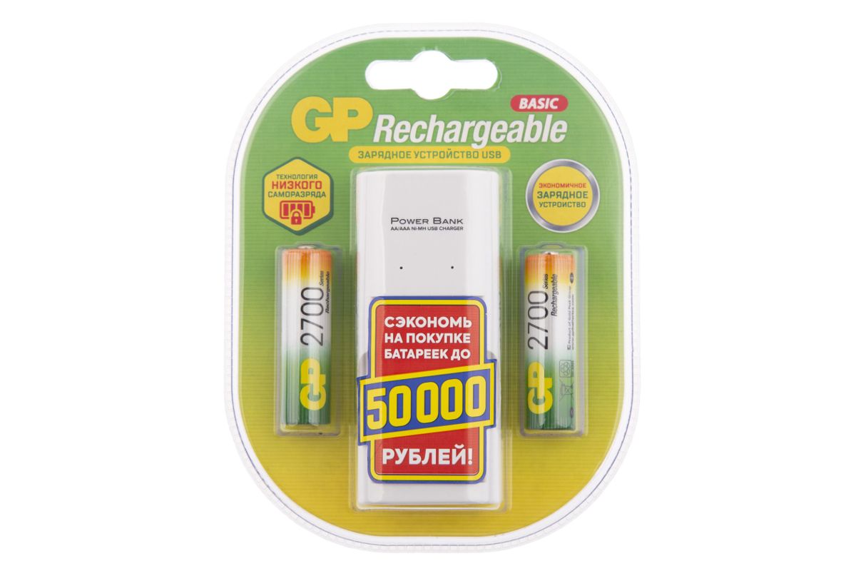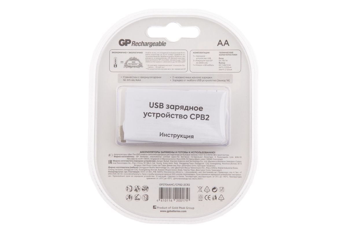 Набор из USB з/у + 2 шт. АКБ 2700 мАч (АА) + провод micro USB GP 270AAHC/CPB2-2CR2