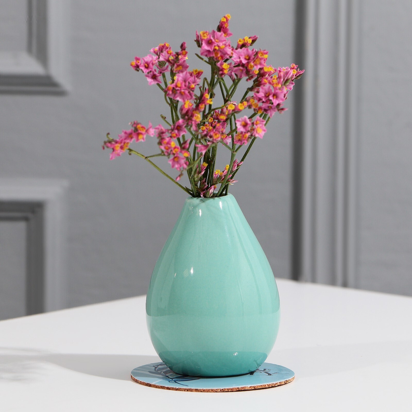 Декоративная ваза отлично дополнит любой букет или флористическую композицию. Так же, миниатюрная ваза, выполненная из керамики будет актуальна как самостоятельный предмет интерьера. В комплекте идет пробковая подставка с красивым рисунком, который отлично сочетается с самой вазой. Ваза-мини с подставкой - прекрасный подарок человеку со вкусом на любой праздник.