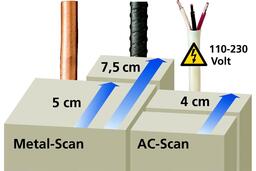 Глубина обнаружения проводов и кабелей AC-Scan до 4 см