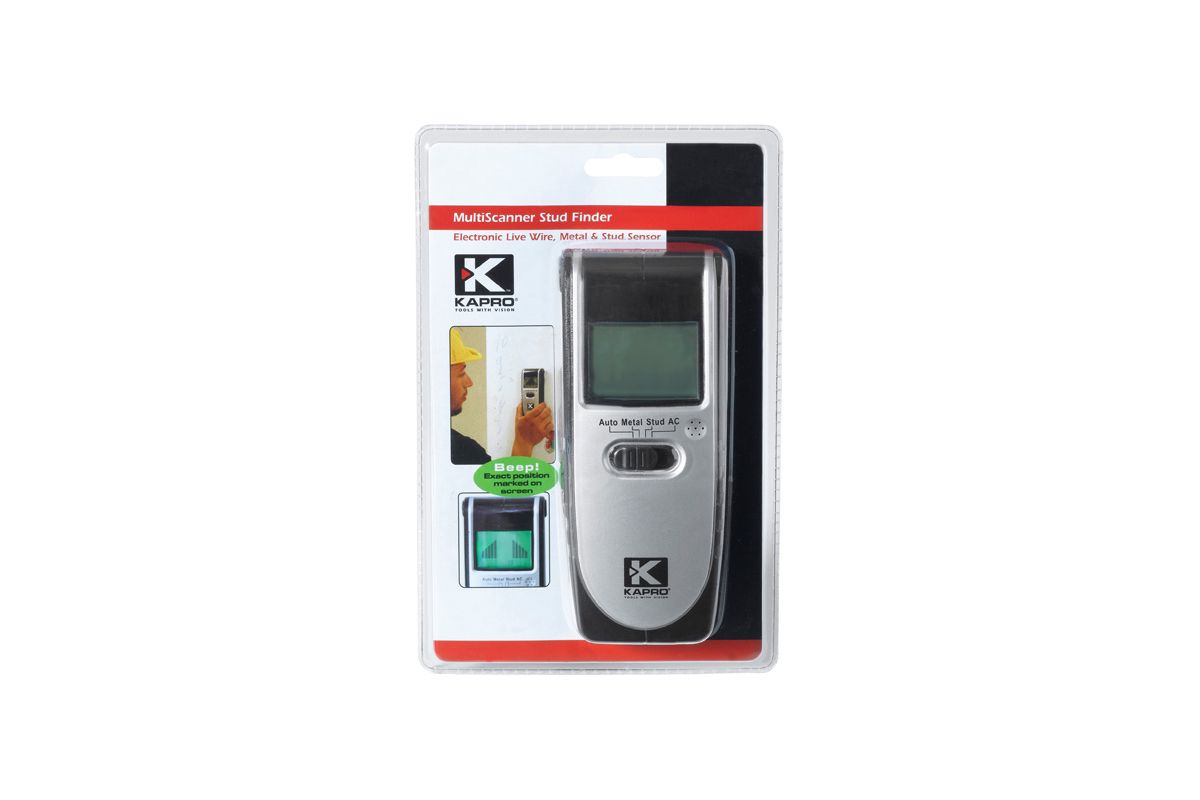 KAPRO 389 — детектор, обнаруживающий скрытые в стене дерево (глубина 18 мм), металл и проводку под напряжением (75 мм). Миниатюрный корпус оснащен ЖК-экраном с легко читаемыми символами. Простой в управлении и практичный прибор поможет выбрать безопасное место для сверления стен. При обнаружении объекта (трубы, арматуры, деревянных элементов) срабатывает звуковая и световая индикация.