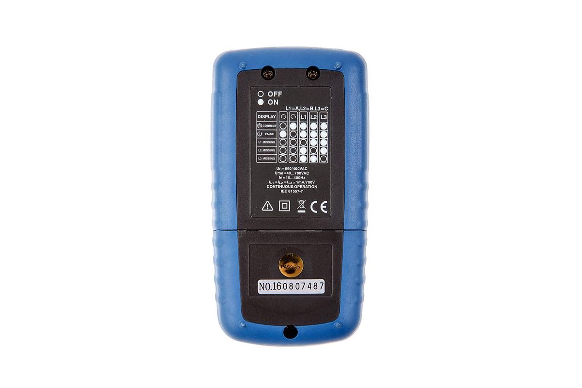 Данные о чередовании фаз выводятся на ЖК-экран. Крупный шрифт легко читать.