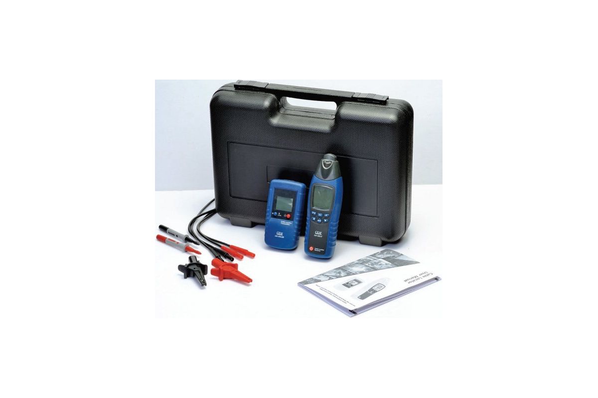 CEM LA-1012 – детектор для обнаружения скрытой проводки под напряжением. Состоит из двух устройств – генератора (создает напряжение в сети) и приемника (определяет место обрыва и уровень напряжения). Подходит для работы с толстыми стенами – фиксирует проводку на глубине до 400 мм.