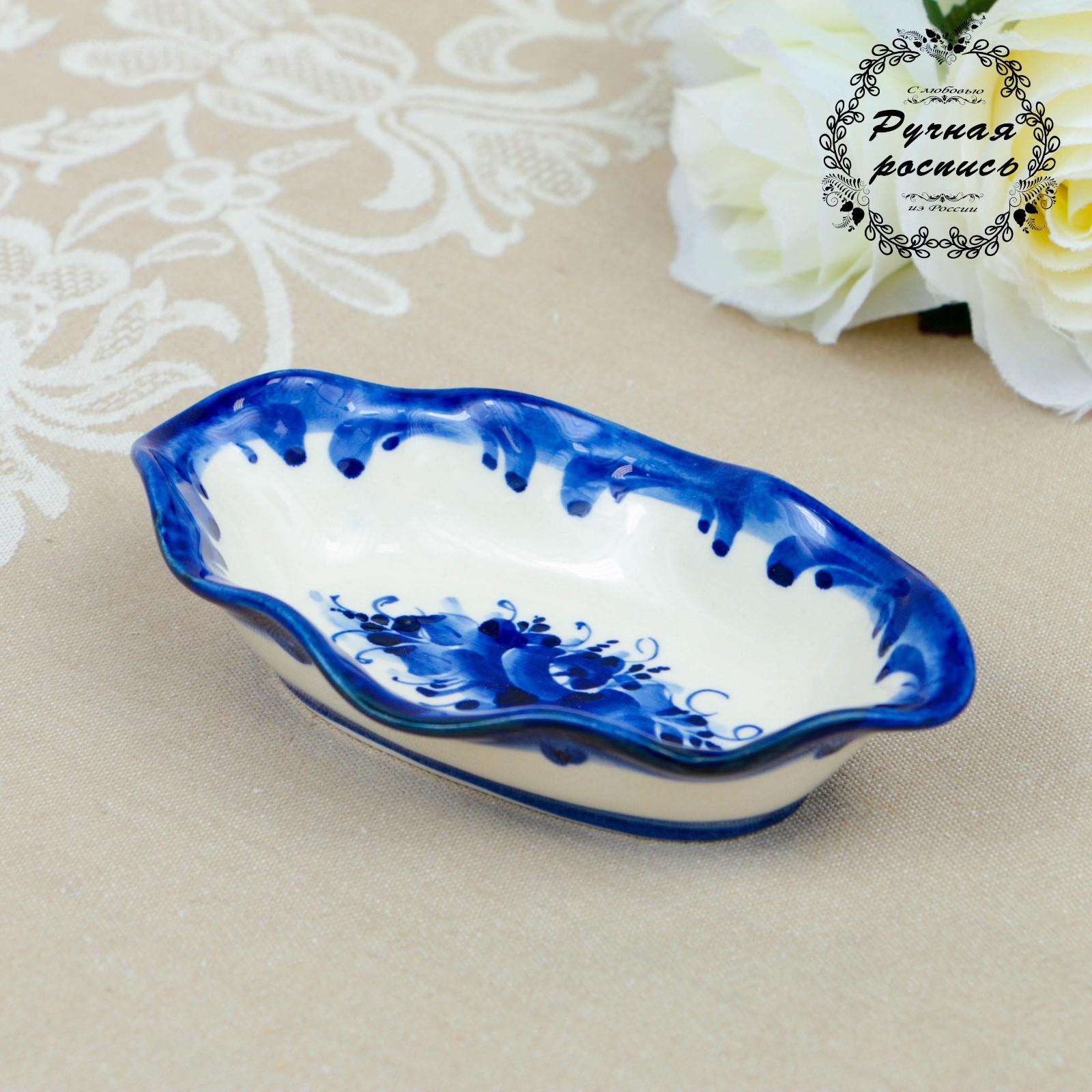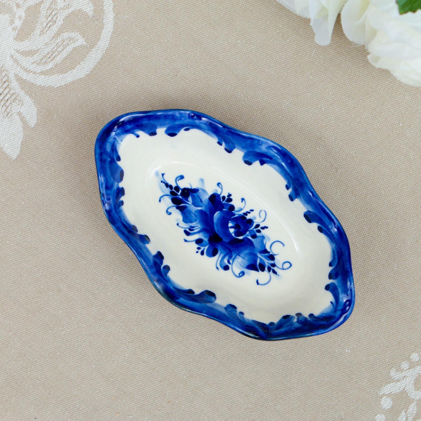 Блюдце для оливок "Ракушка", гжель, фарфор, 3х14 см