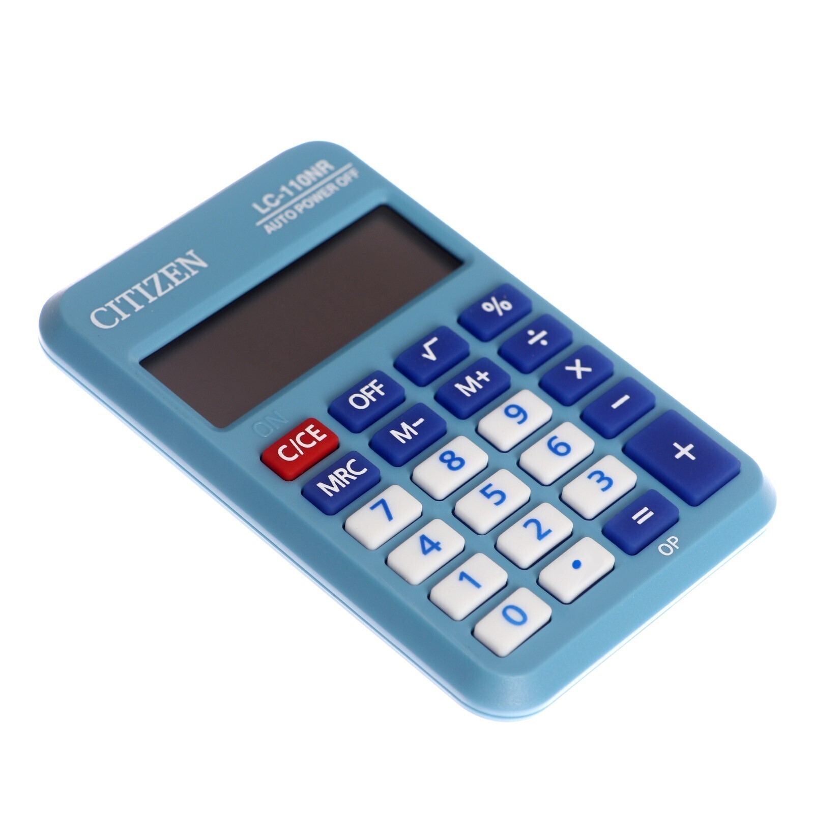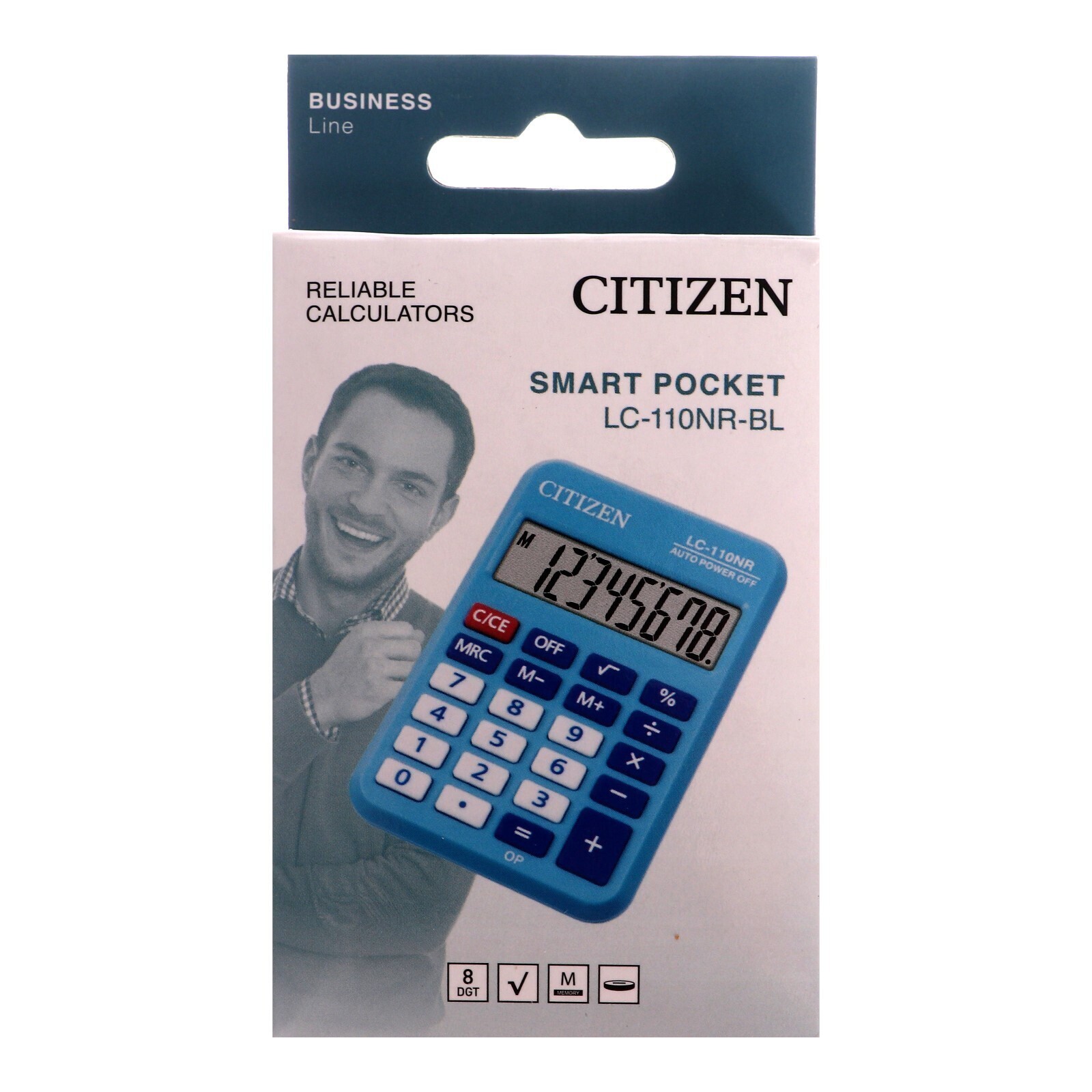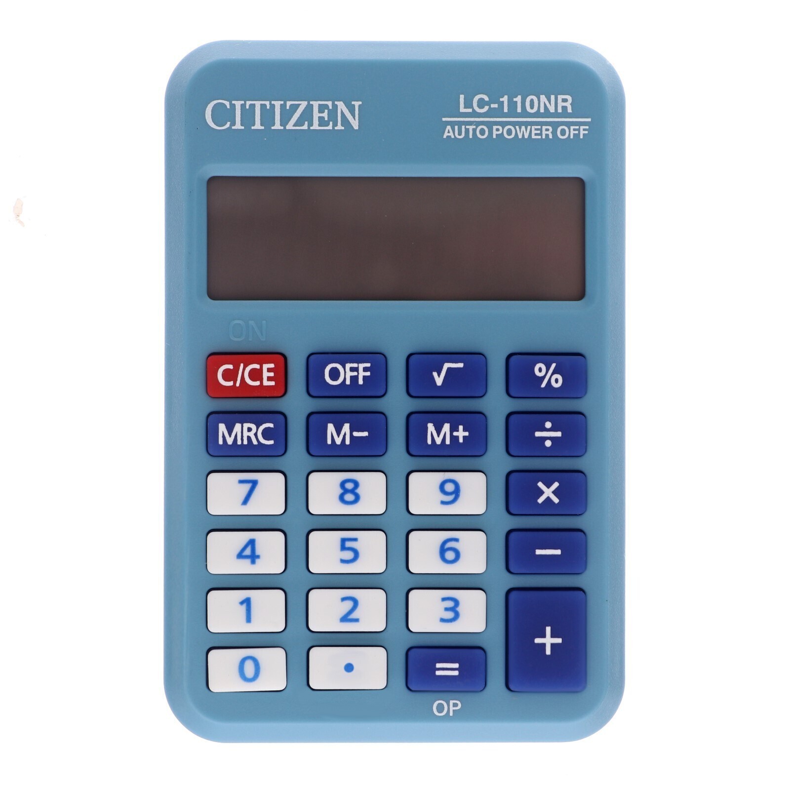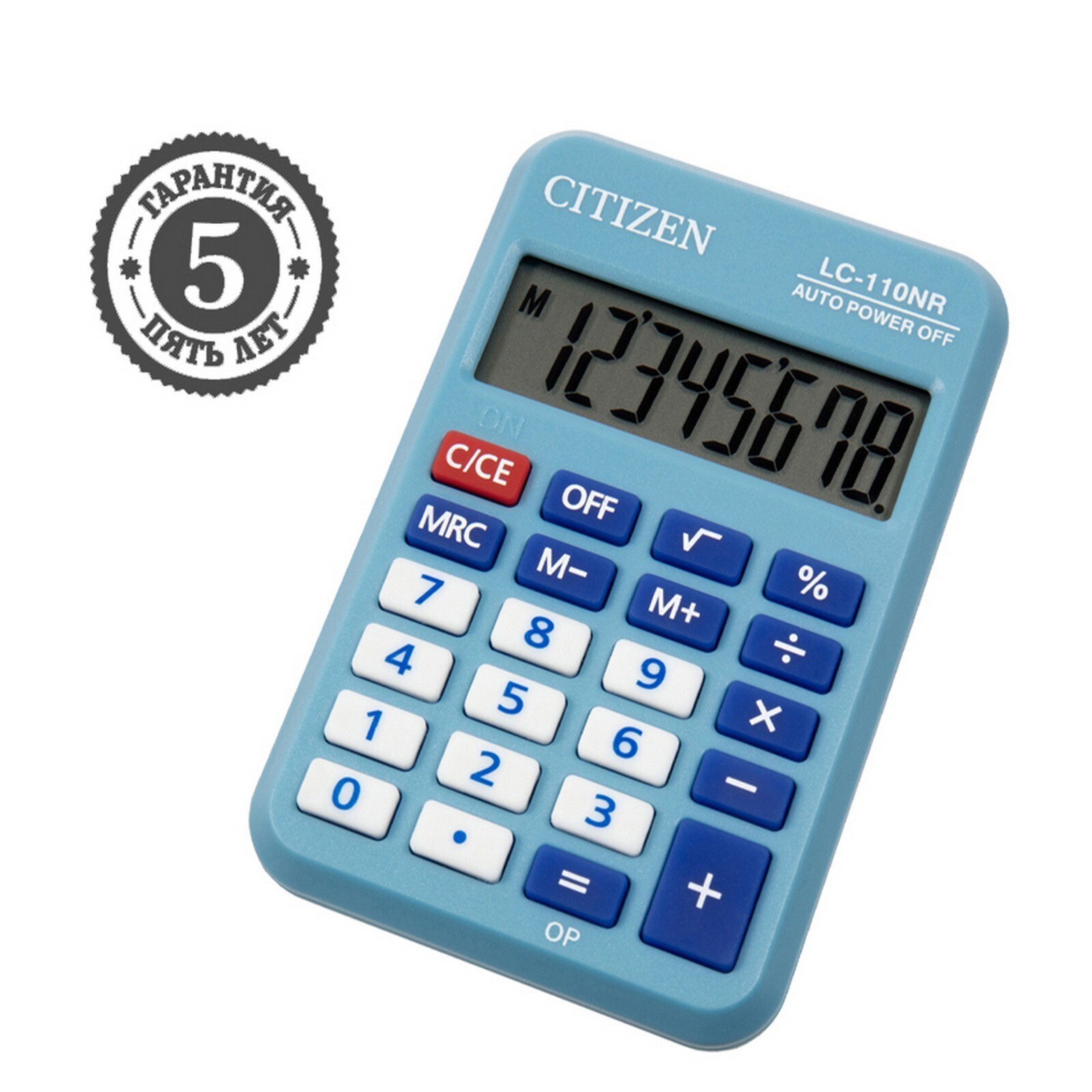 8-ми разрядный карманный калькулятор Citizen LC-110NR-BL предназначен для выполнения арифметических операций. Базовые функции помогут сделать простые расчёты, вычислить квадратный корень и проценты, выполнить операции с памятью. Калькулятор работает только на батарее AG10(LR1130), кнопка выключения позволит сэкономить заряд. Упакован в картонную коробку. Размер калькулятора – 58 x 88 x11 мм, вес – 32 г, цвет – голубой. Гарантия 5 лет. Карманные калькуляторы идеально подойдут взрослым и детям, они компактны и надежны.