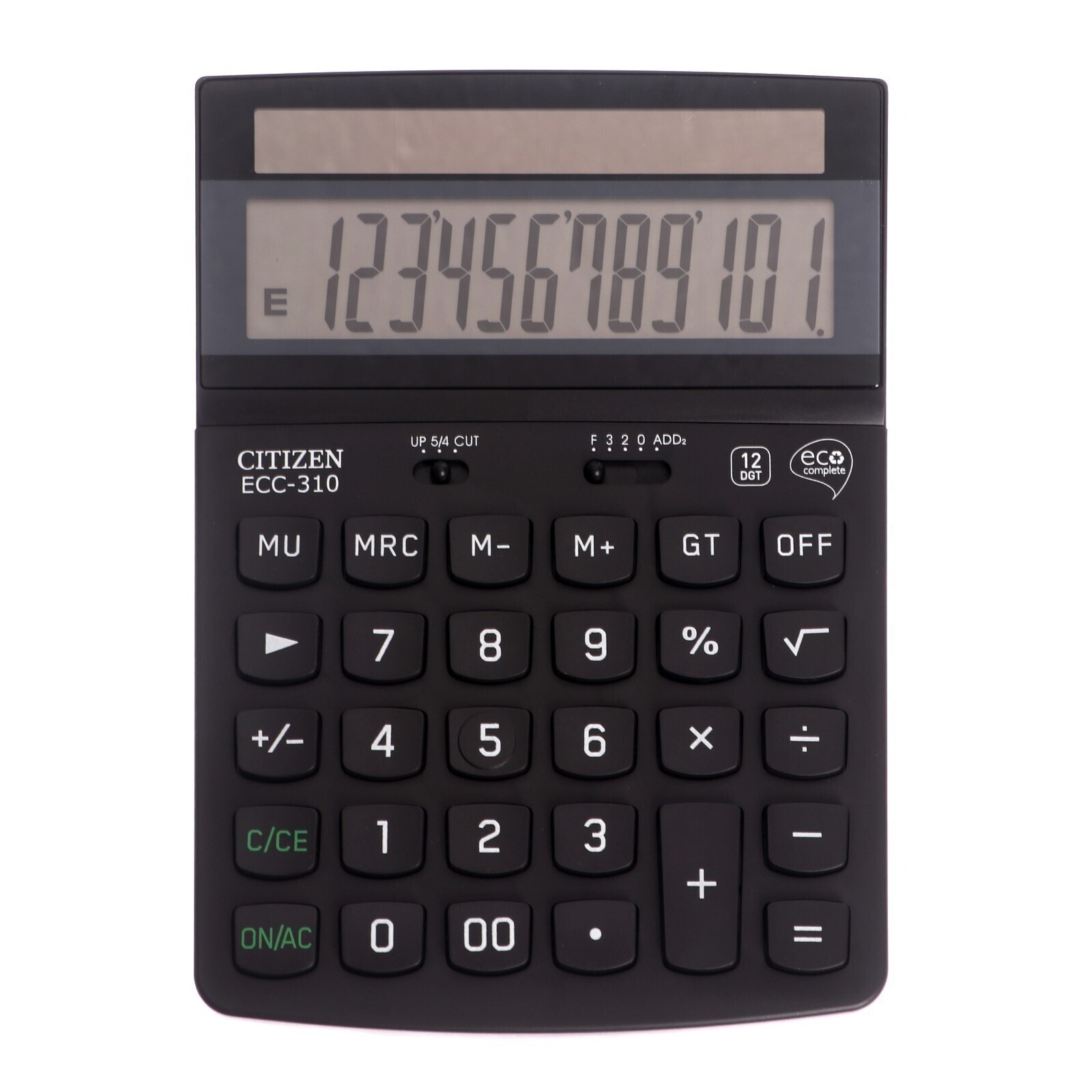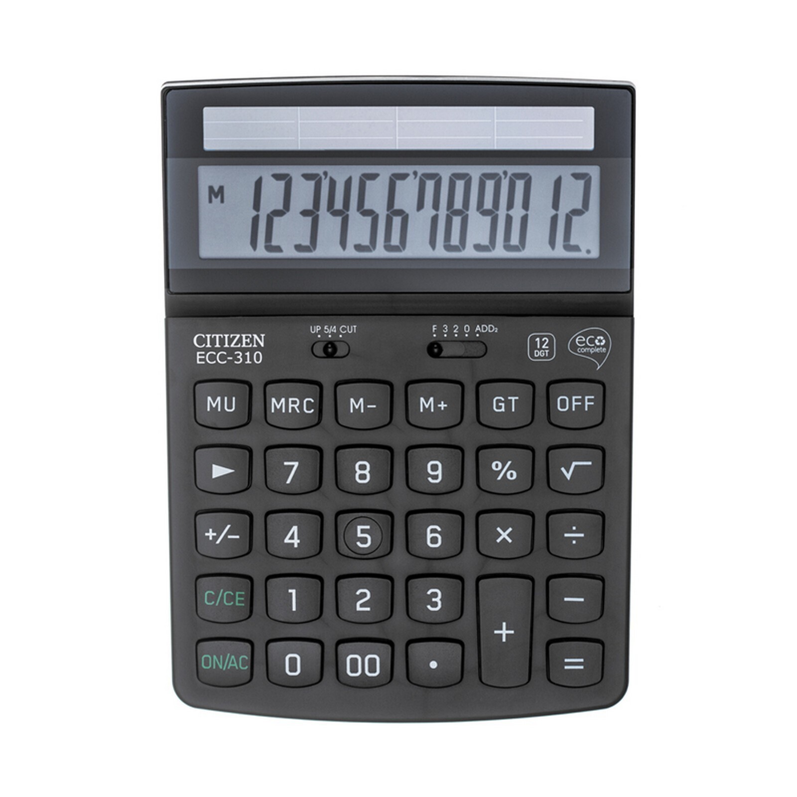 Калькулятор настольный,12 разрядов, Citizen ECC-310, питание от солнечной батареи, 107 х 173 х 34мм, черный