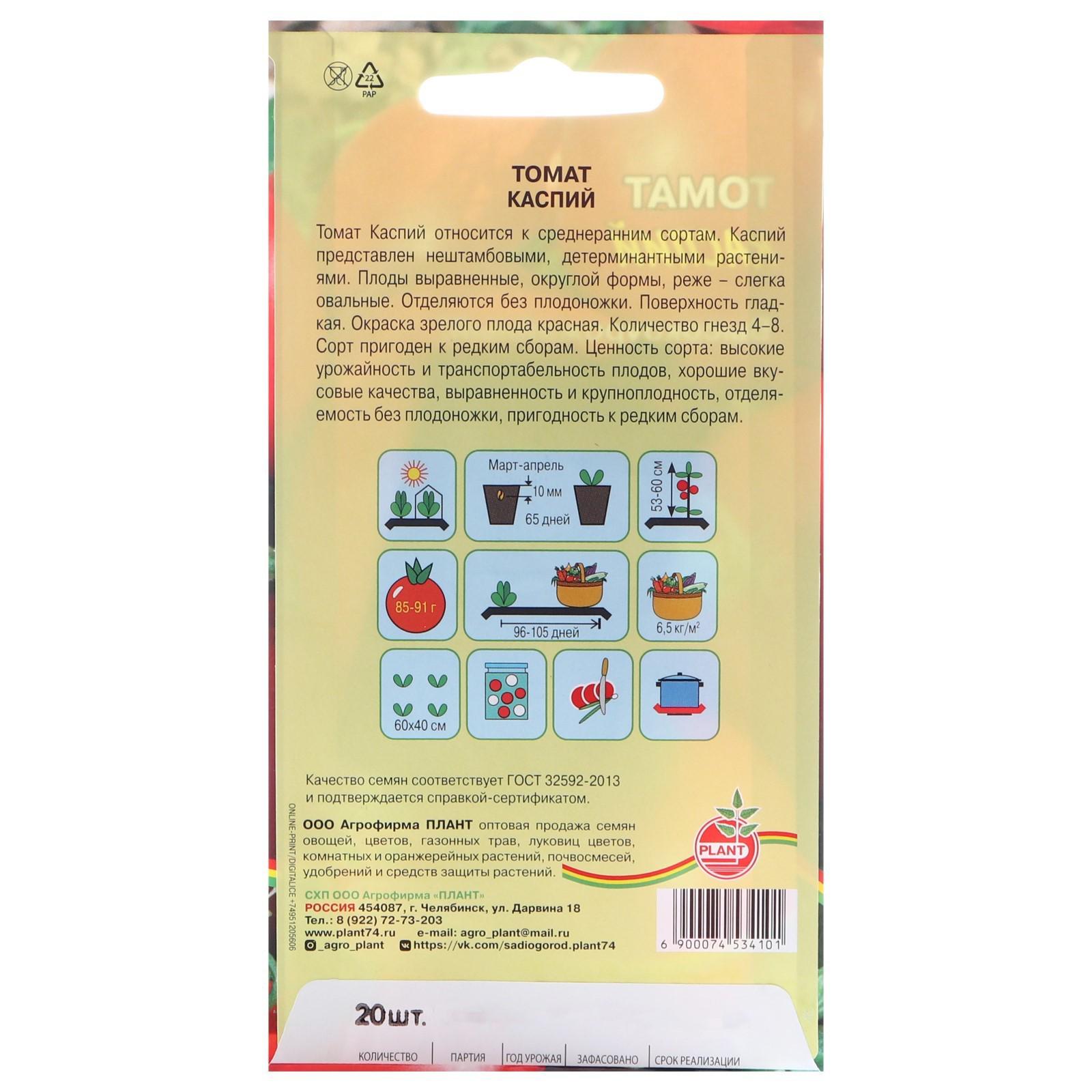 Томат "Каспий" относится к среднеранним сортам. Созревание плодов наступает на 96–105-й день после полных всходов. Сорт пригоден к редким сборам. Урожайность высокая и составляет 6.5 кг/м2.