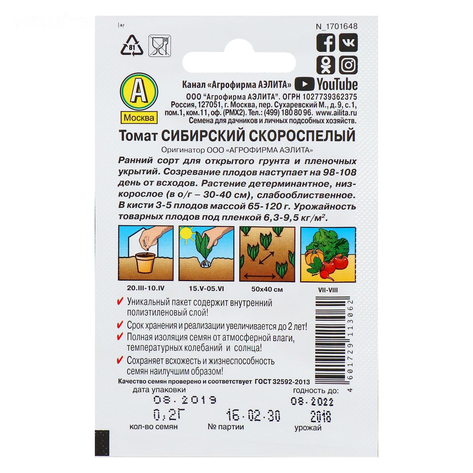 Семена Томат "Сибирский скороспелый" "Лидер", 0,2 г ,
