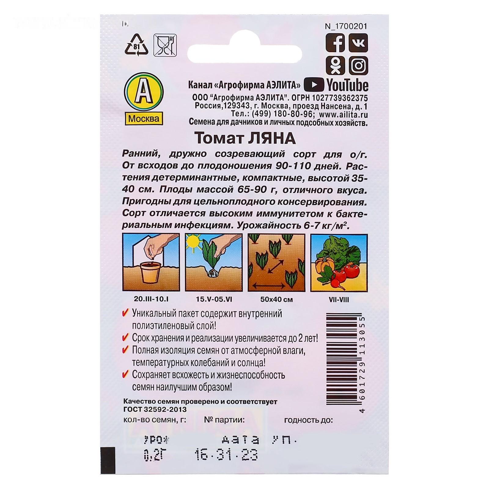 Семена Томат "Ляна" "Лидер", среднеспелый, 0,2 г ,