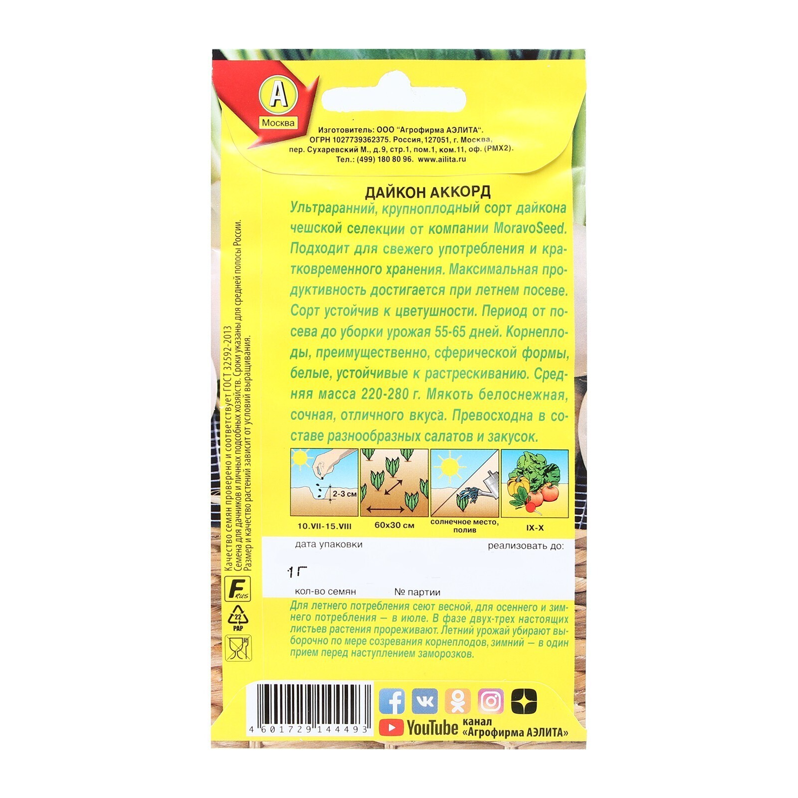 Семена Дайкон Аккорд, 1 г