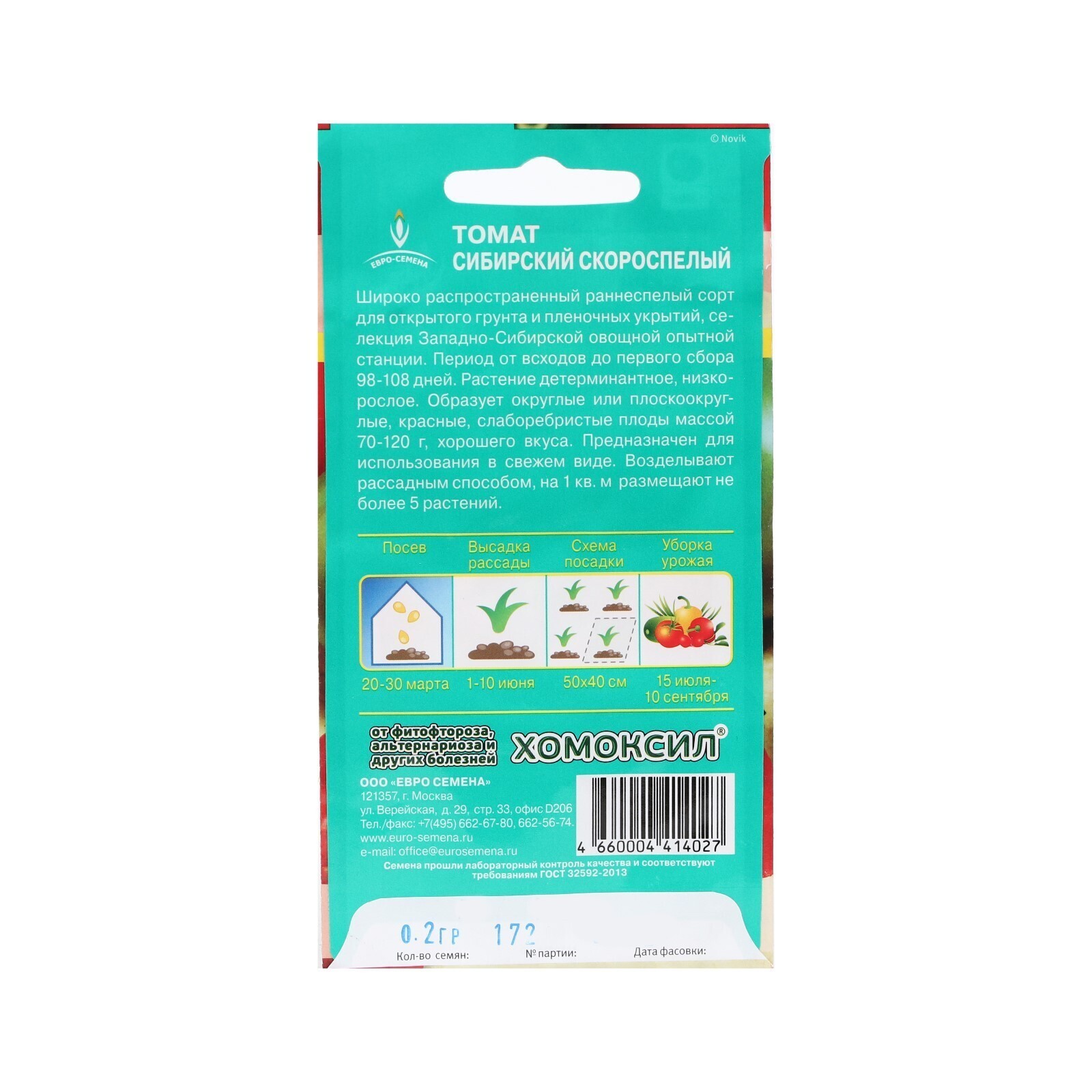 Семена Томат Сибирский скороспелый цв/п 0,2 гр. низкорослый