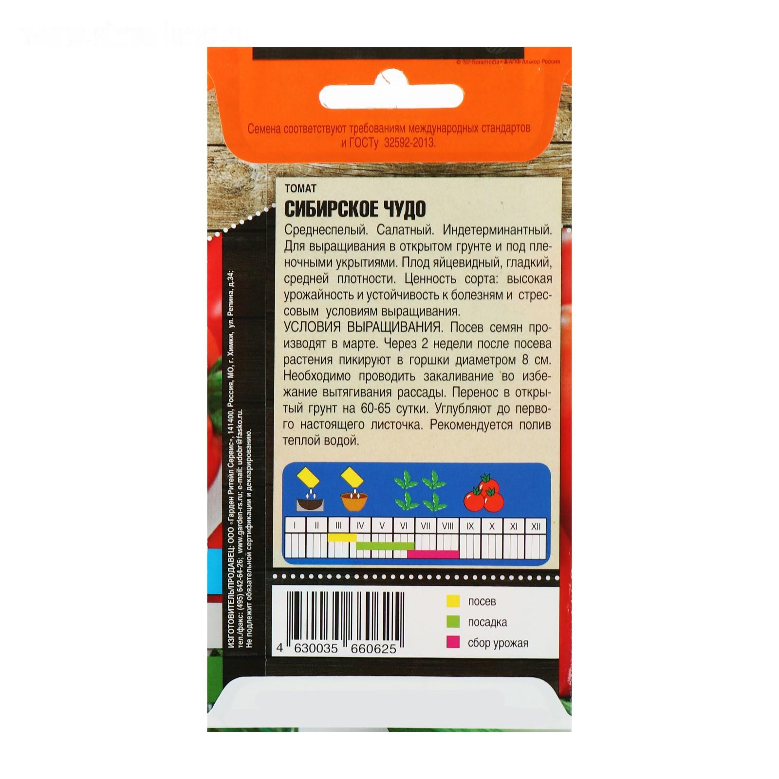 Семена Томат "Сибирское чудо", среднеспелый, 0,1 г