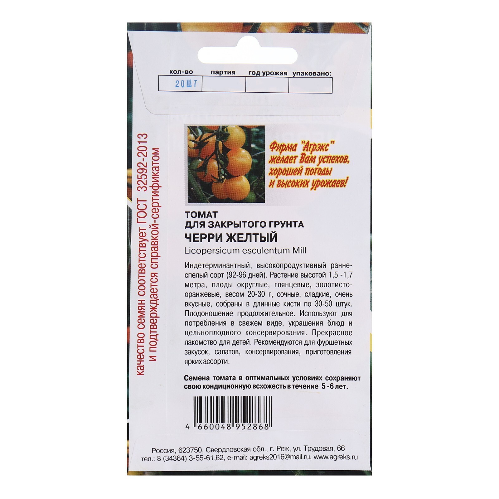 Раннеспелый (92-96 дней от всходов до плодоношения) высокорослый (более 200 см) сорт, рекомендован для выращивания в пленочных теплицах и открытом грунте (с подвязкой к кольям). Выращивают рассадным способом. После высадки растение формируют в один стебель, удаляя все «пасынки». Плоды округлой формы, желтого цвета, массой 15-20 г. Особую декоративность растениям придает длинная кисть с 20-40 плодами, которые имеют превосходный, сладкий вкус. Урожайность одного растения 1,0- 2,0 кг.