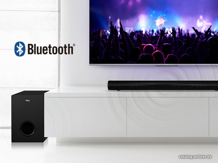 • Состав аудиосистемы звуковая панель, беспроводной сабвуфер