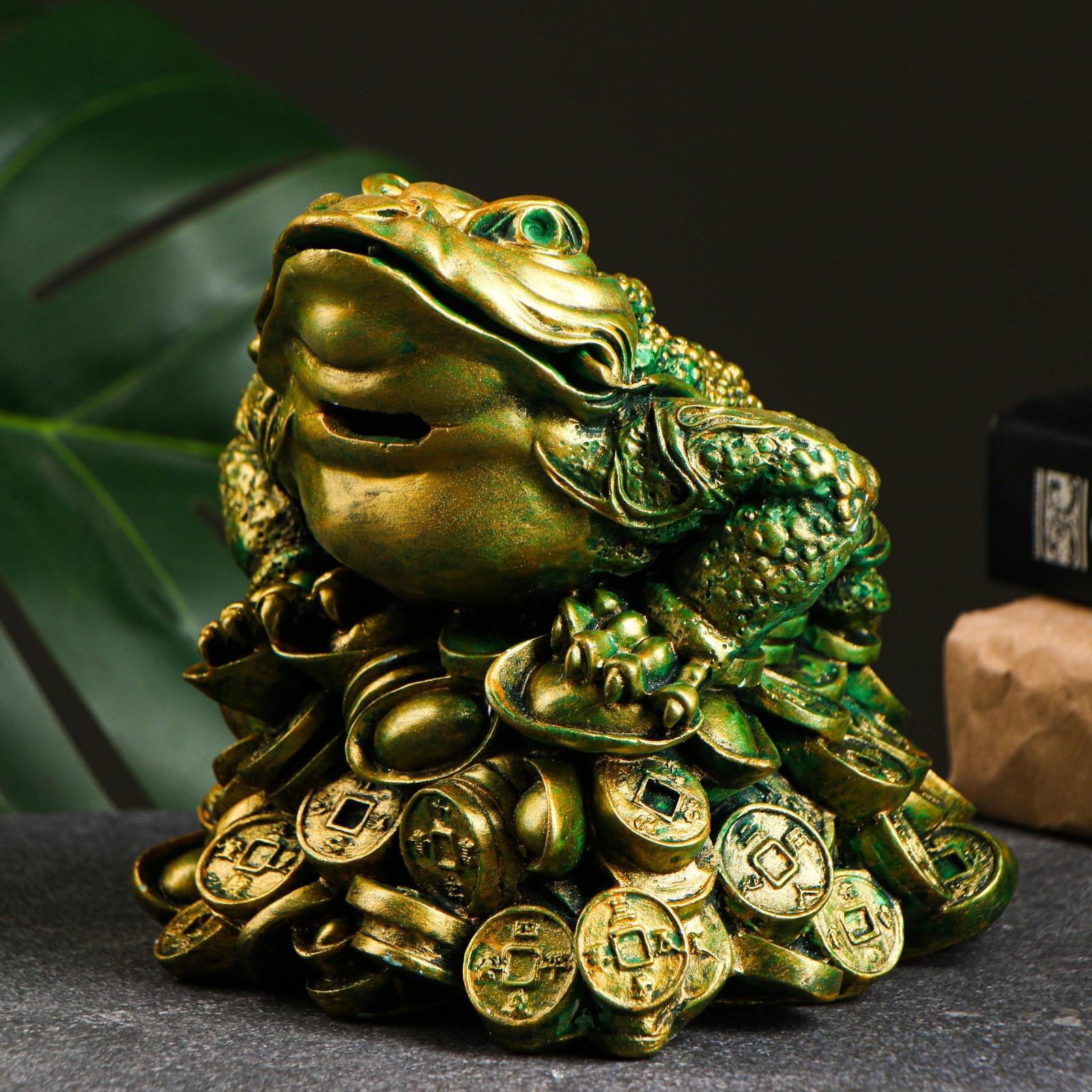 Копилка "Жаба на деньгах" зеленая с позолотой, 15х15х15см