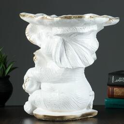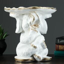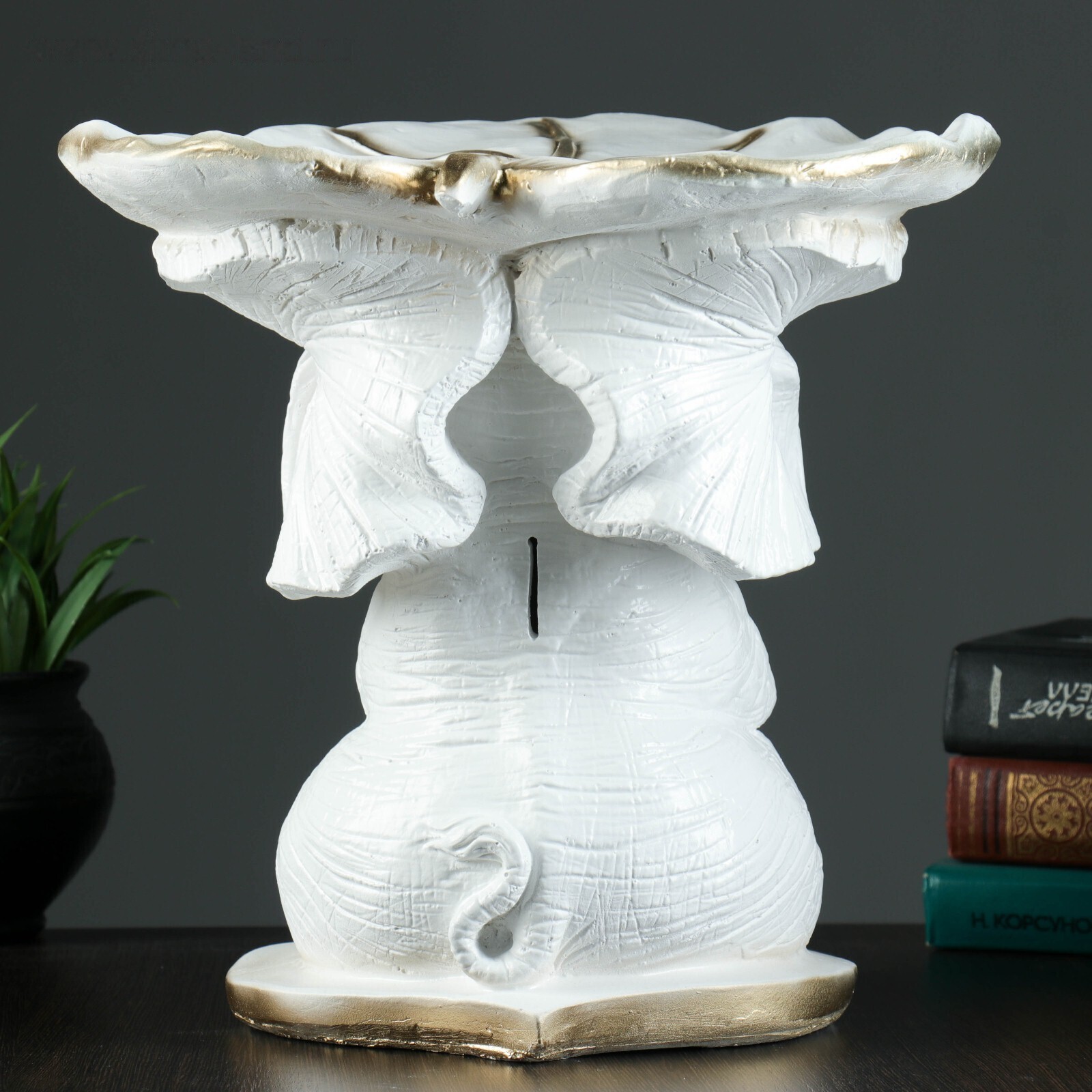 Копилка "Слон сидя с листком" белое золото, 28х29х29см