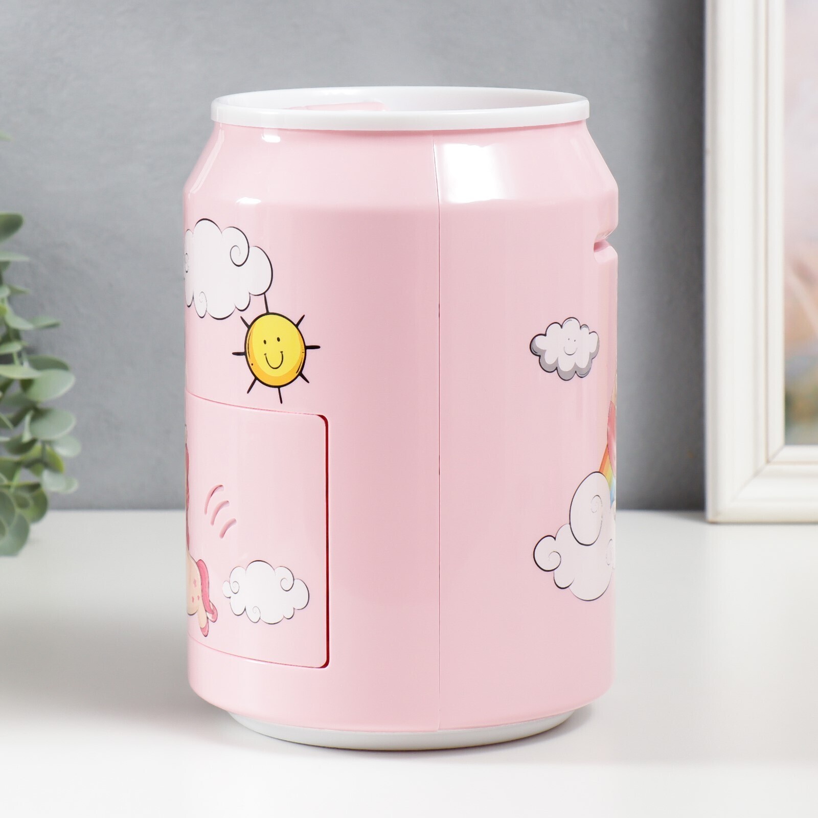 Копилка пластик "Банка. Единорог" кодовый замок, звук АА розовый 15х21 см