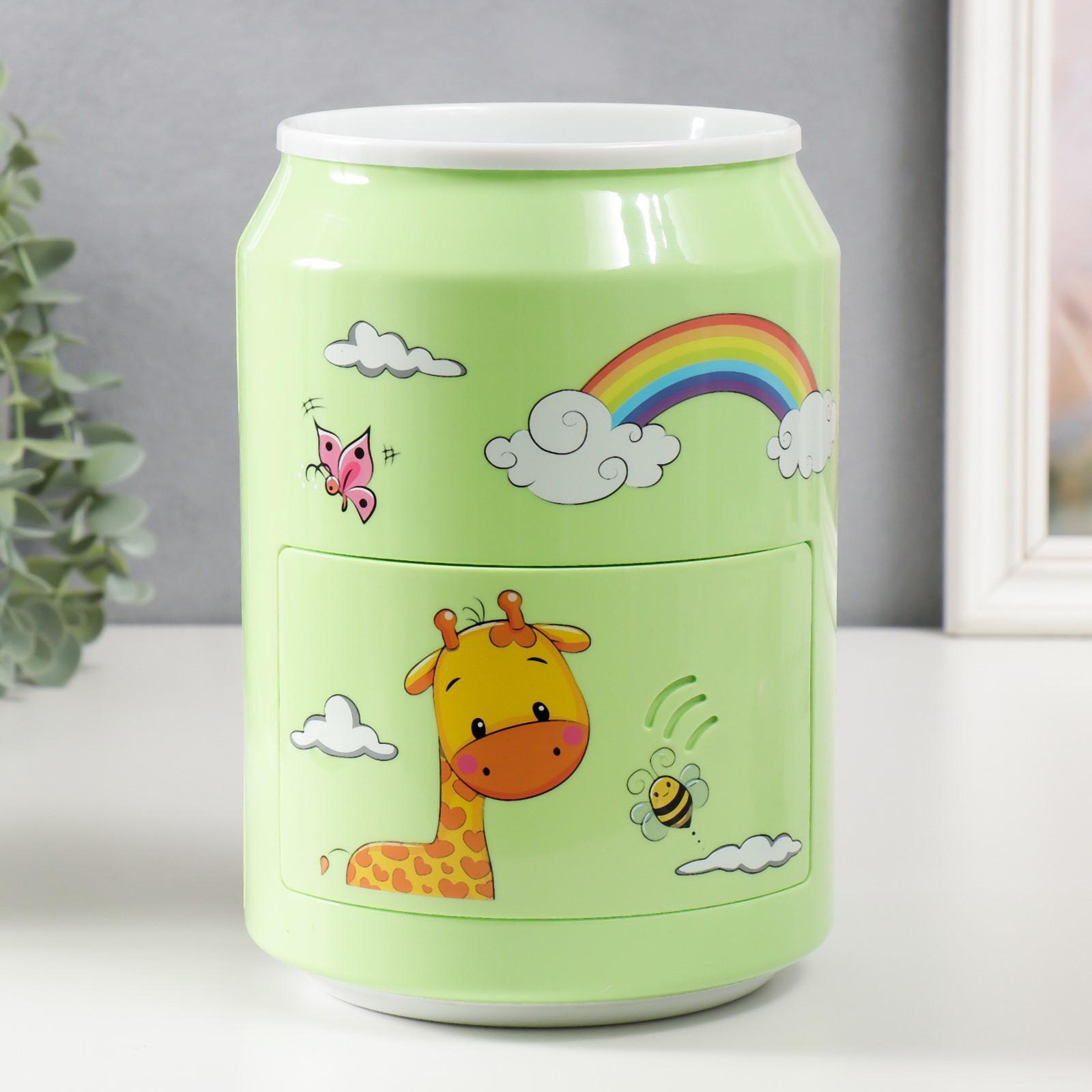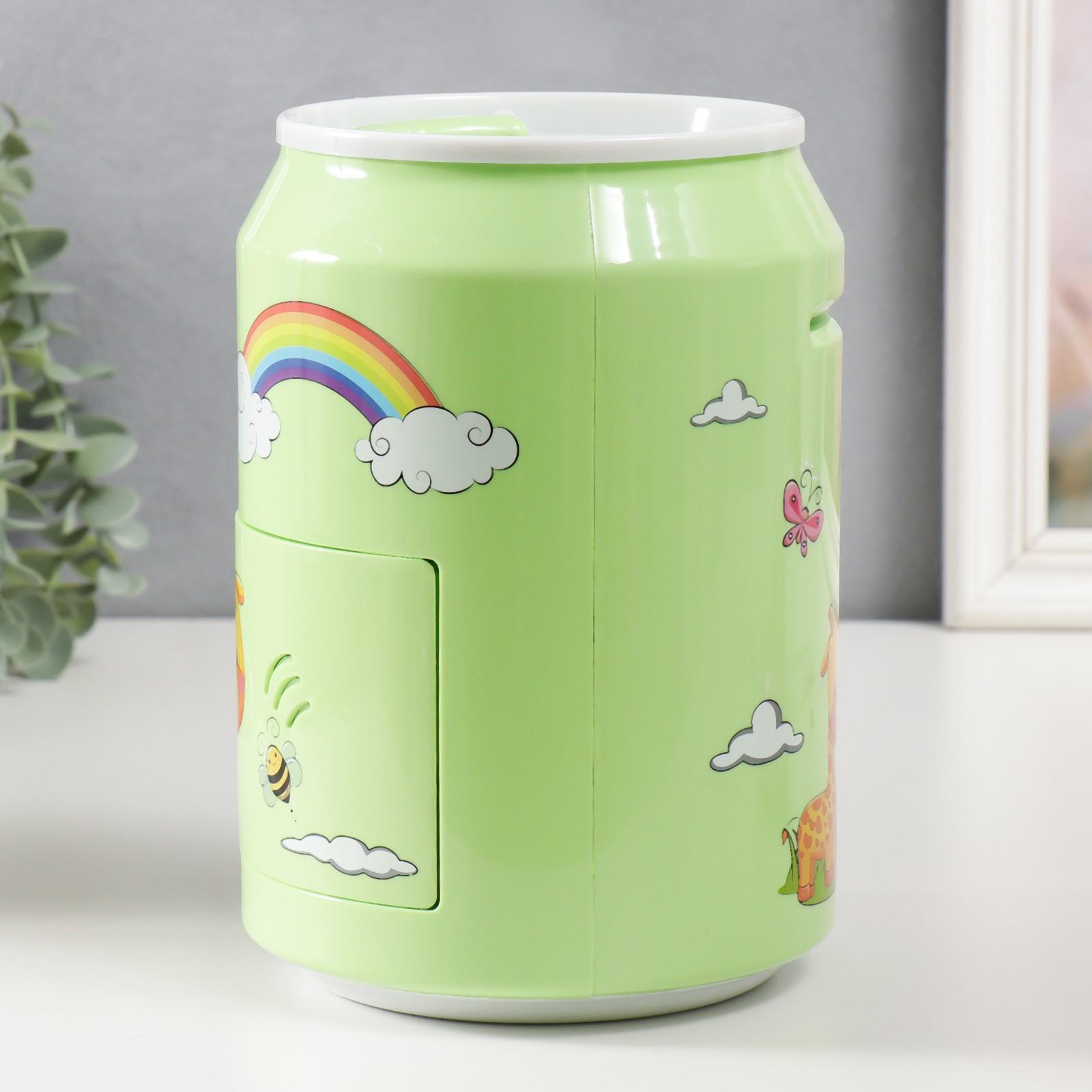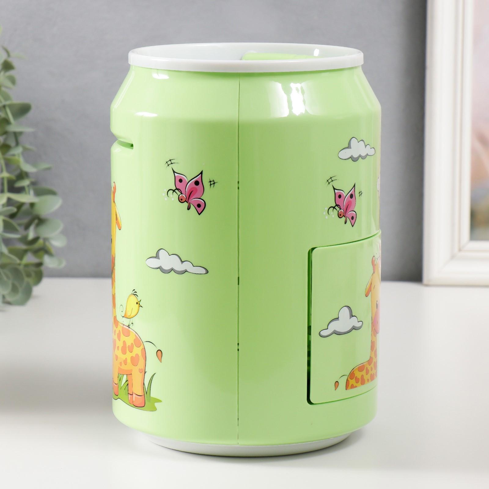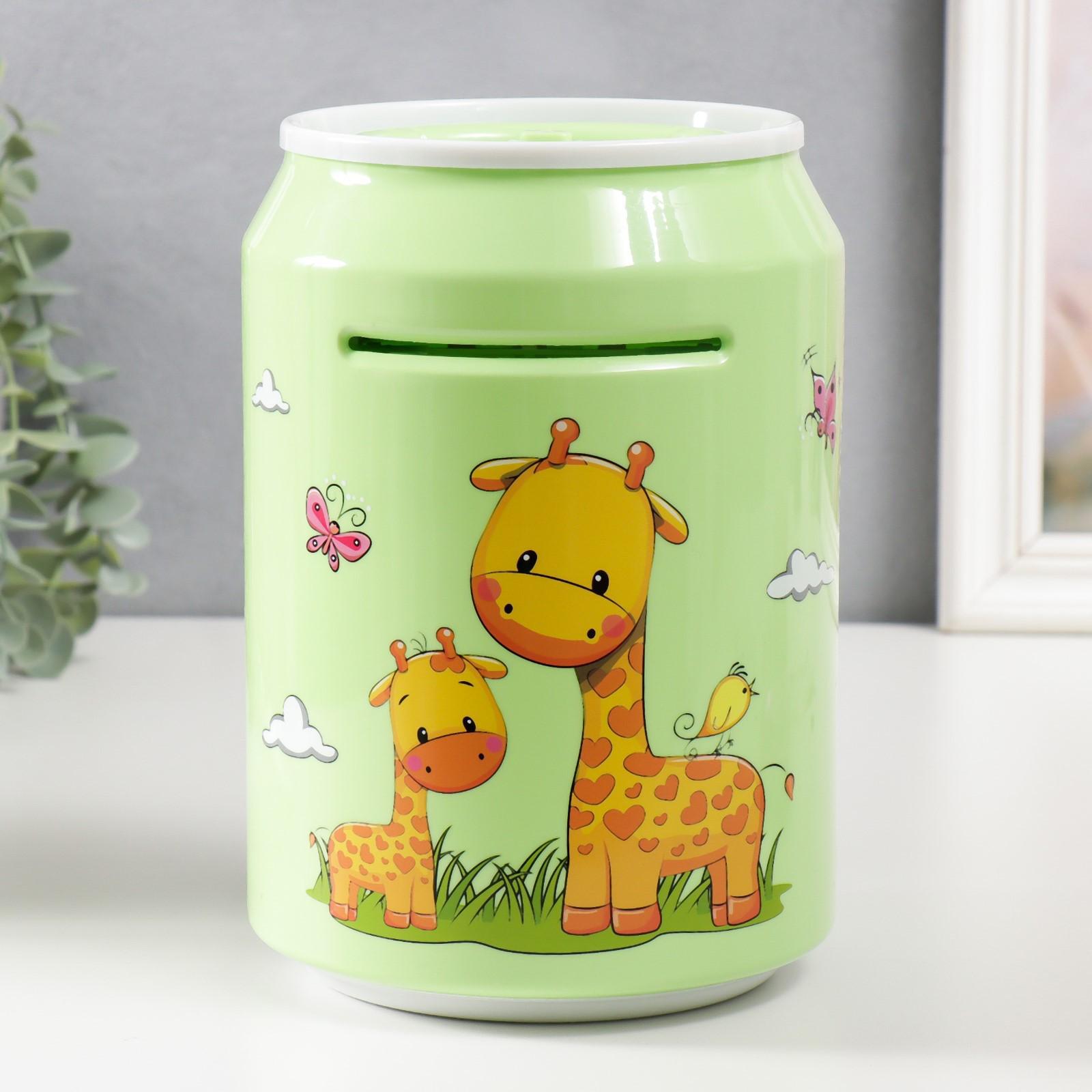 Копилка пластик "Банка. Жирафики" кодовый замок, звук АА зелёный 15х21 см
