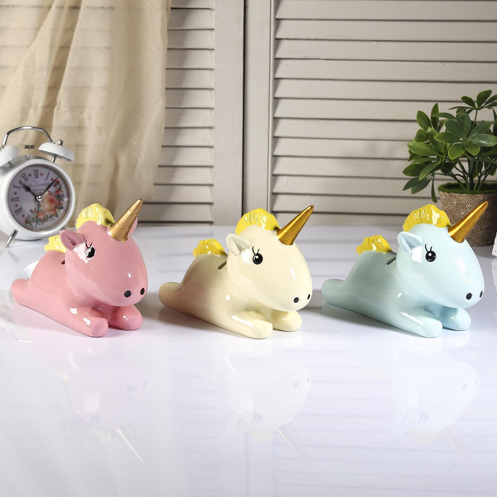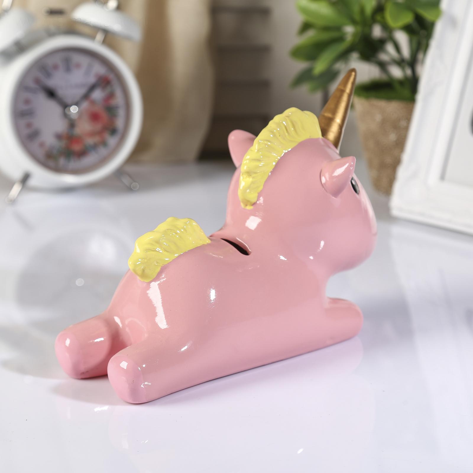Копилка керамика "Единорожек с золотым рогом" МИКС 14,5х20х9,5 см