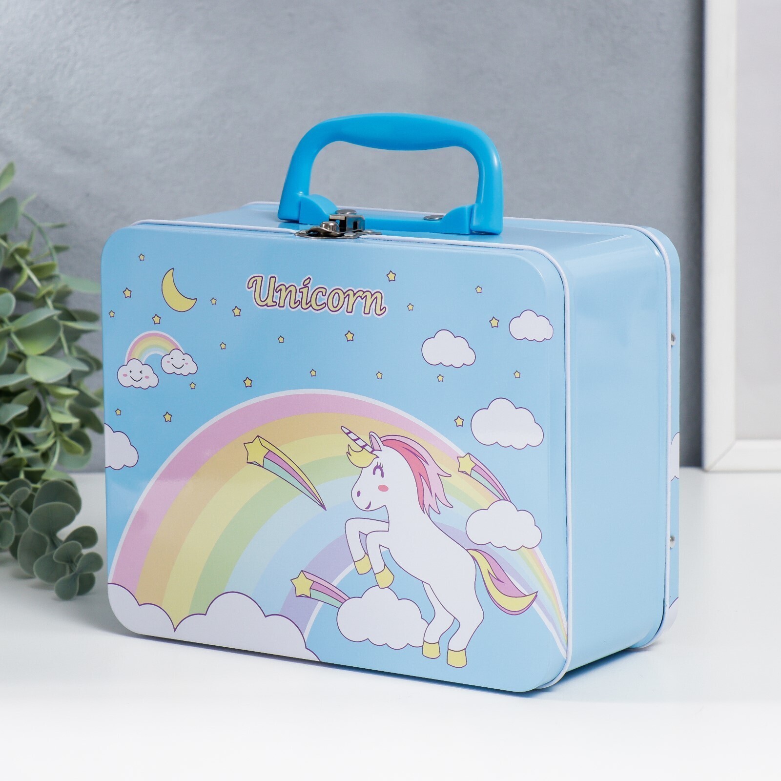 Копилка металл чемодан "Единорог и радуга" 9,5х15,5х19,5 см