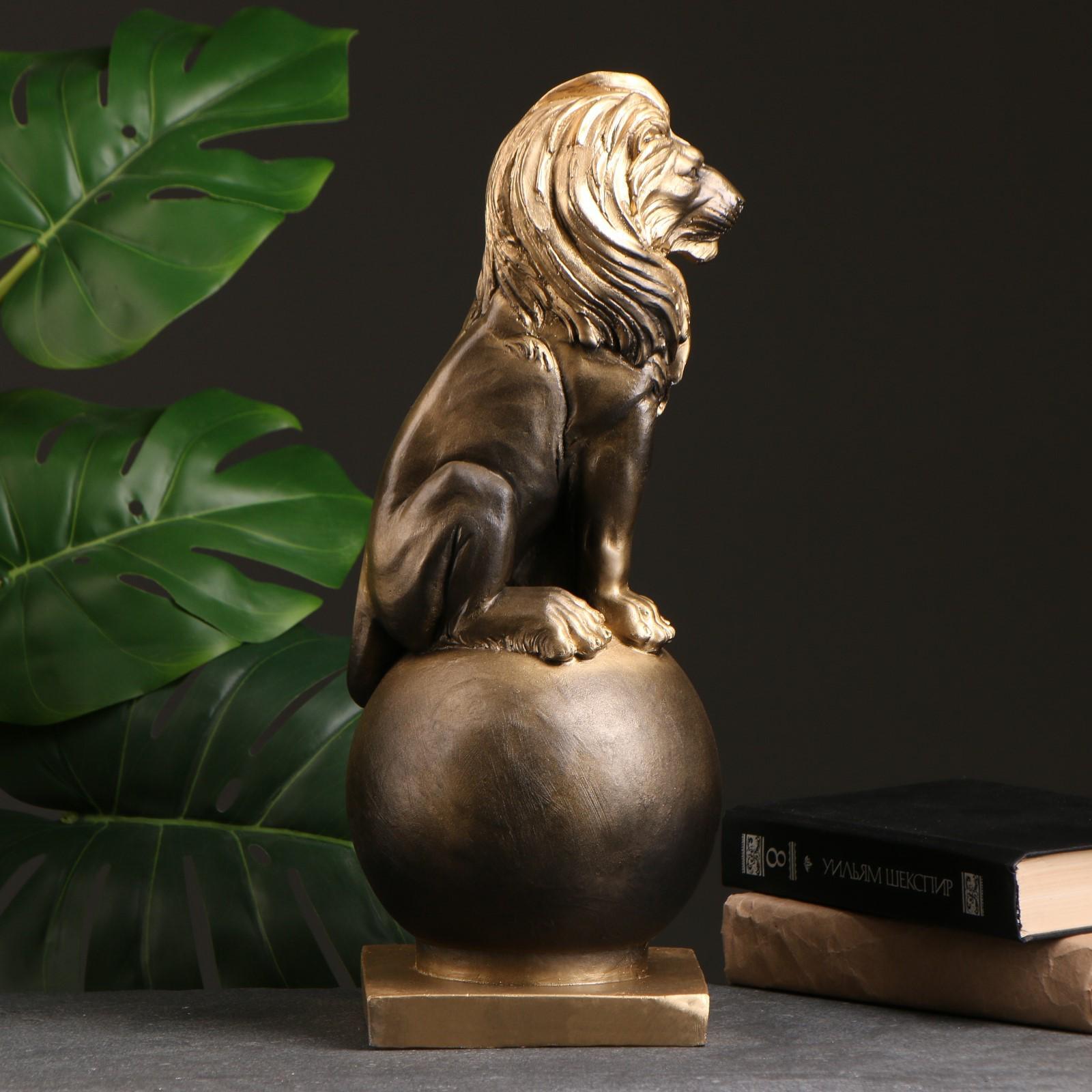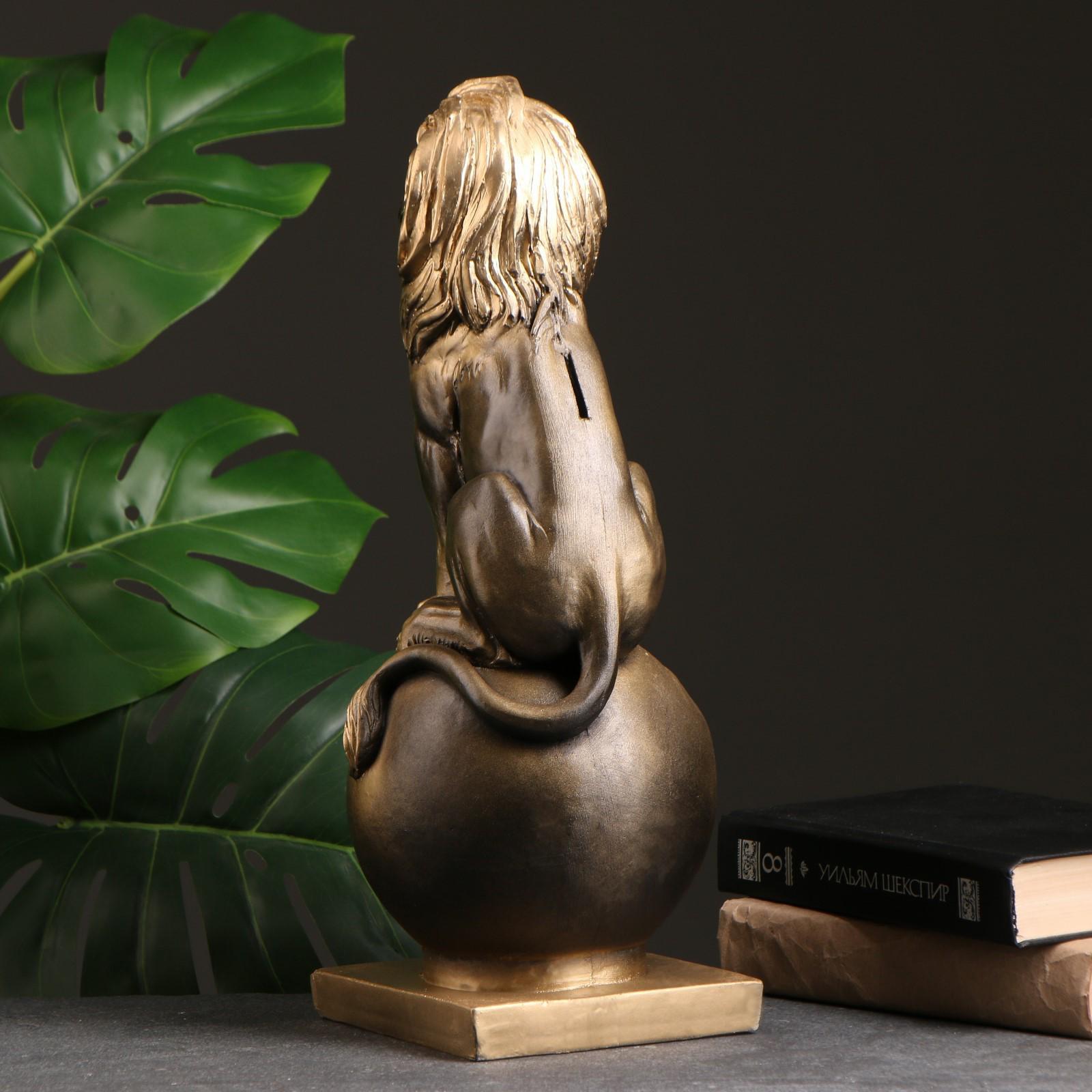 Копилка "Лев на шаре малый" черное золото, 42х17х16см