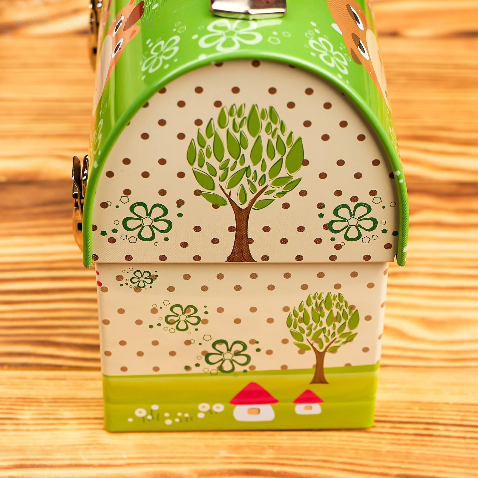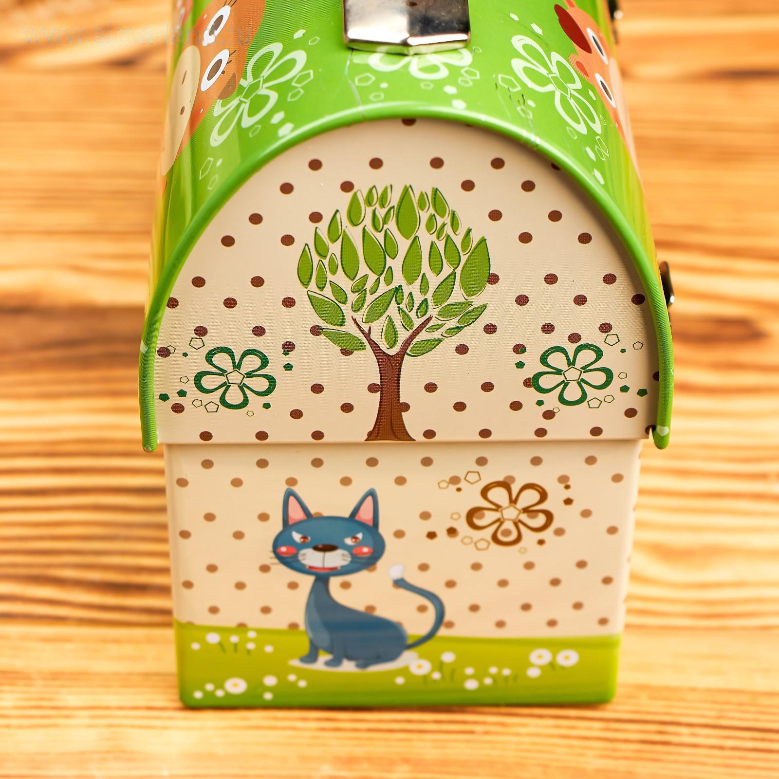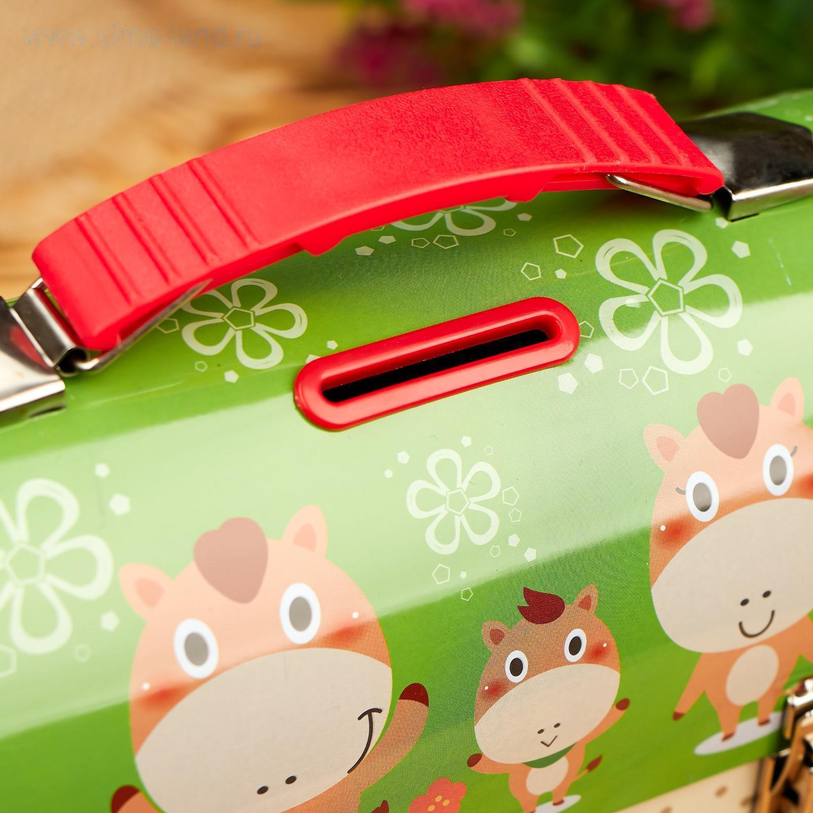Копилка металл сундучок "Коровки и лошадки" 13х16х8,5 см
