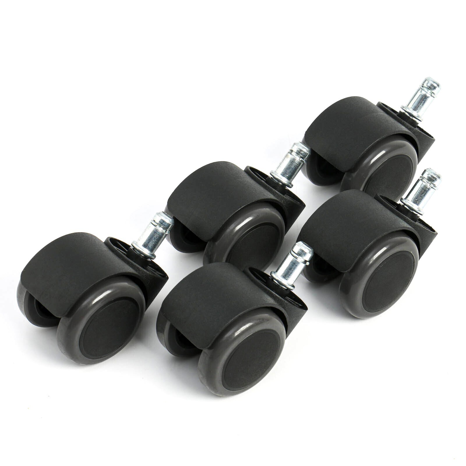 Комплект роликов для кресла,черные, прорезиненные, шток d-11 мм (5 штук)