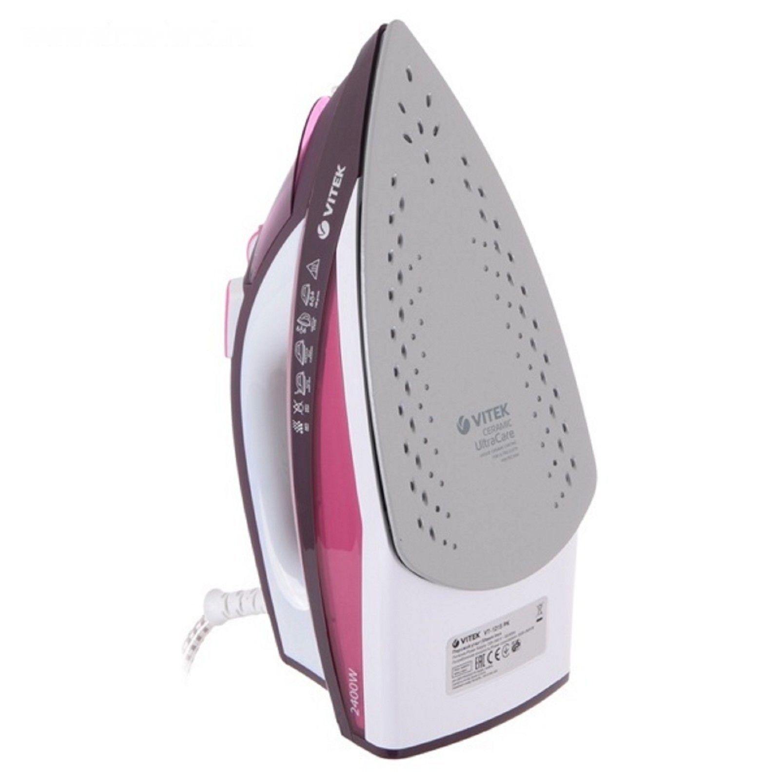 Утюг Vitek VT-1215 PK, 2400 Вт, керамическая подошва, 20 г/мин, 320 мл, розовый 1766