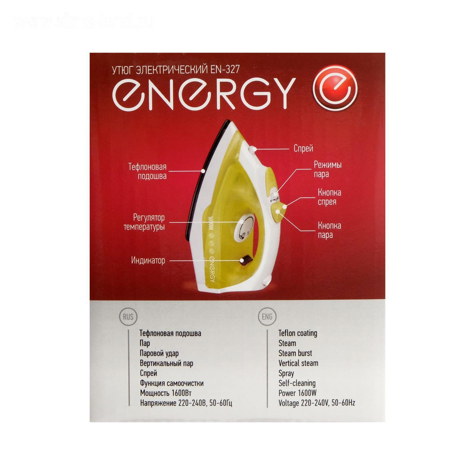 Утюг ENERGY EN-327, 1600 Вт, тефлоновая подошва, 170 мл, бело-жёлтый