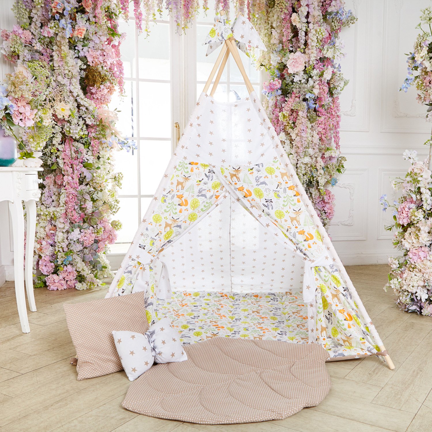 Игровая палатка ВигваМАМ Лесные животные звездопад с ковриком прикроватным Листик ЛЖ17