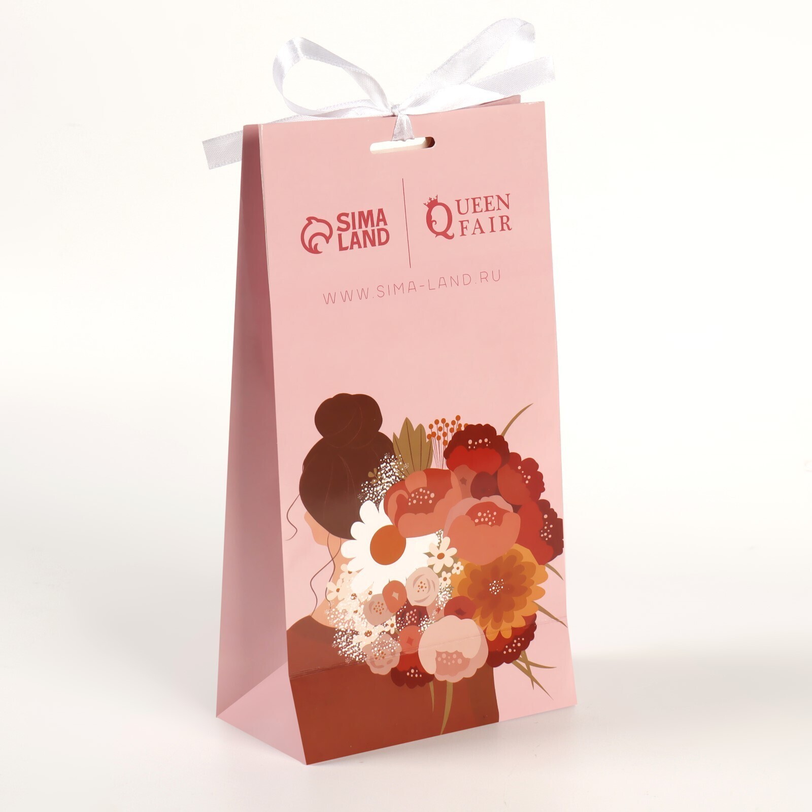 Картонный пакет «Цветы», с лентой, 25 х 13 х 7 см
