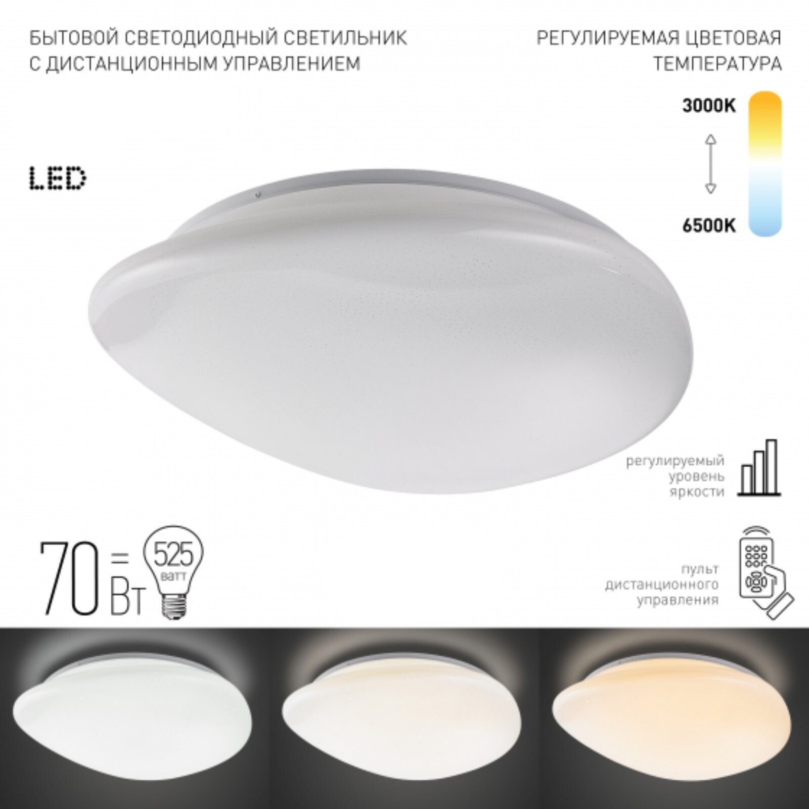 • Управление светильником Есть пульт ДУ