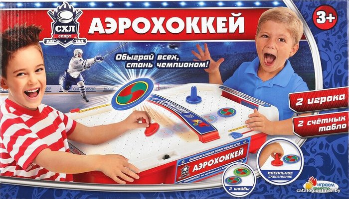 - Комплектация -игровое поле с воздушной подушкой, тумблером включения/выключения, разделителем-2 счетных табло-2 шайбы-2 биты