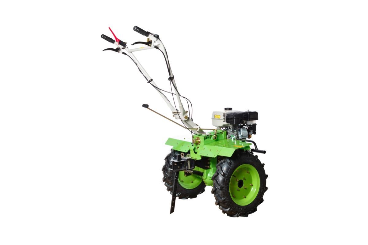 Бензин; кВт 5,15/7л.с.; 208 куб.см; модель B170F/P; бак 6л; ручной запуск; ширина 1100мм; глубина 100-300мм; скорости: 2/1; шестеренчатый редуктор; колеса: 5.00х12''; вес-116кг.