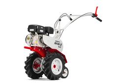 Мотоблок позволяет обрабатывать почву и выполнять различные сельскохозяйственные работы. Данная модель оснащена сошником, который дает возможность регулировать глубину обработки. Опорные колеса предусмотрены для транспортировки агрегата с навесным оборудованием. Мощный двигатель обеспечивает эффективное выполнение работ. Для оптимального скоростного режима агрегат имеет пониженную и повышенную передачи.