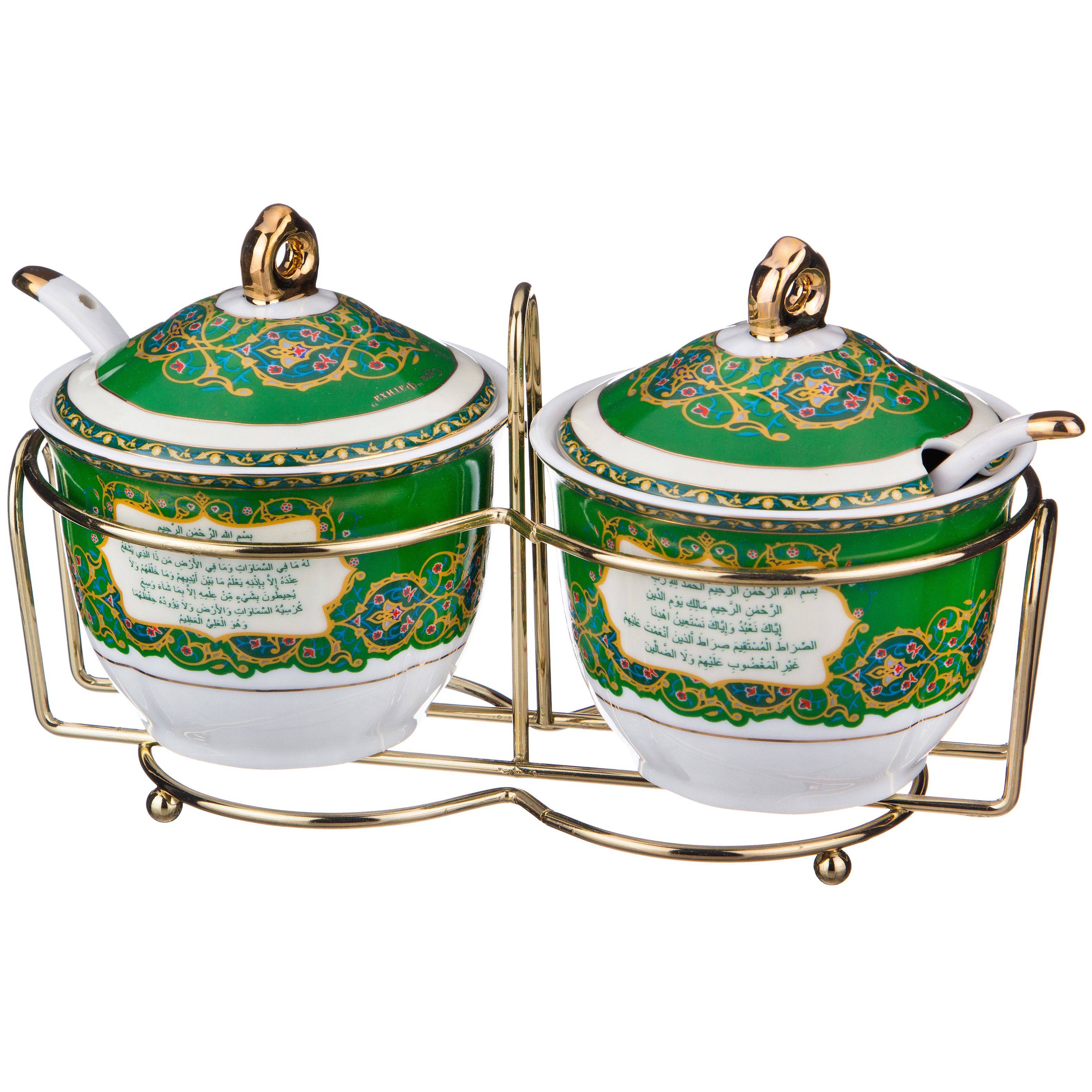 ТМ LEFARD представляет эксклюзивную коллекцию посуды «Суры из Корана». Кувшины, чайники, сахарницы, кружки, чайные пары, декоративные тарелки и другие предметы выполнены из высококачественного тонкостенного фарфора. Восточный орнамент, небольшие отрывки Сур из Корана на классическом арабском и русском языках с отделкой золотом украшают изделия. Это прекрасный мусульманский подарок, всегда нужный и теплый. Относитесь к нему бережно и с почтением. Посуду коллекции можно использовать как в повседневной жизни, так и на торжественном приеме. Не рекомендуется мыть в посудомоечной машине и использовать в микроволновой печи.