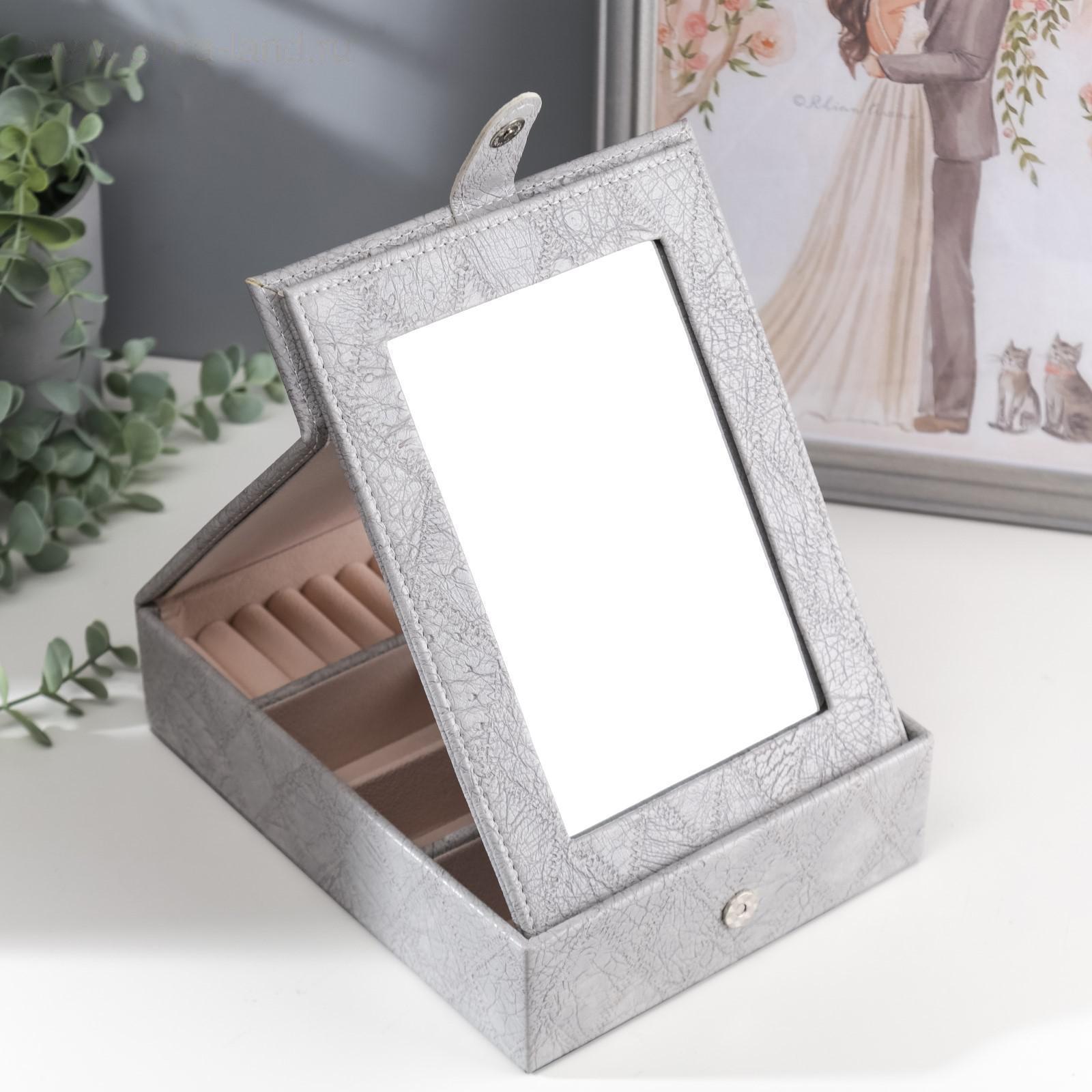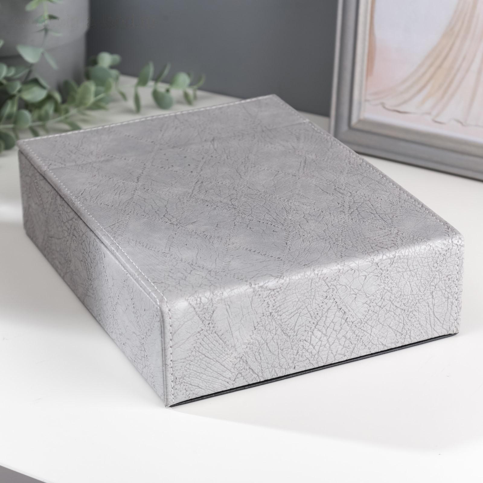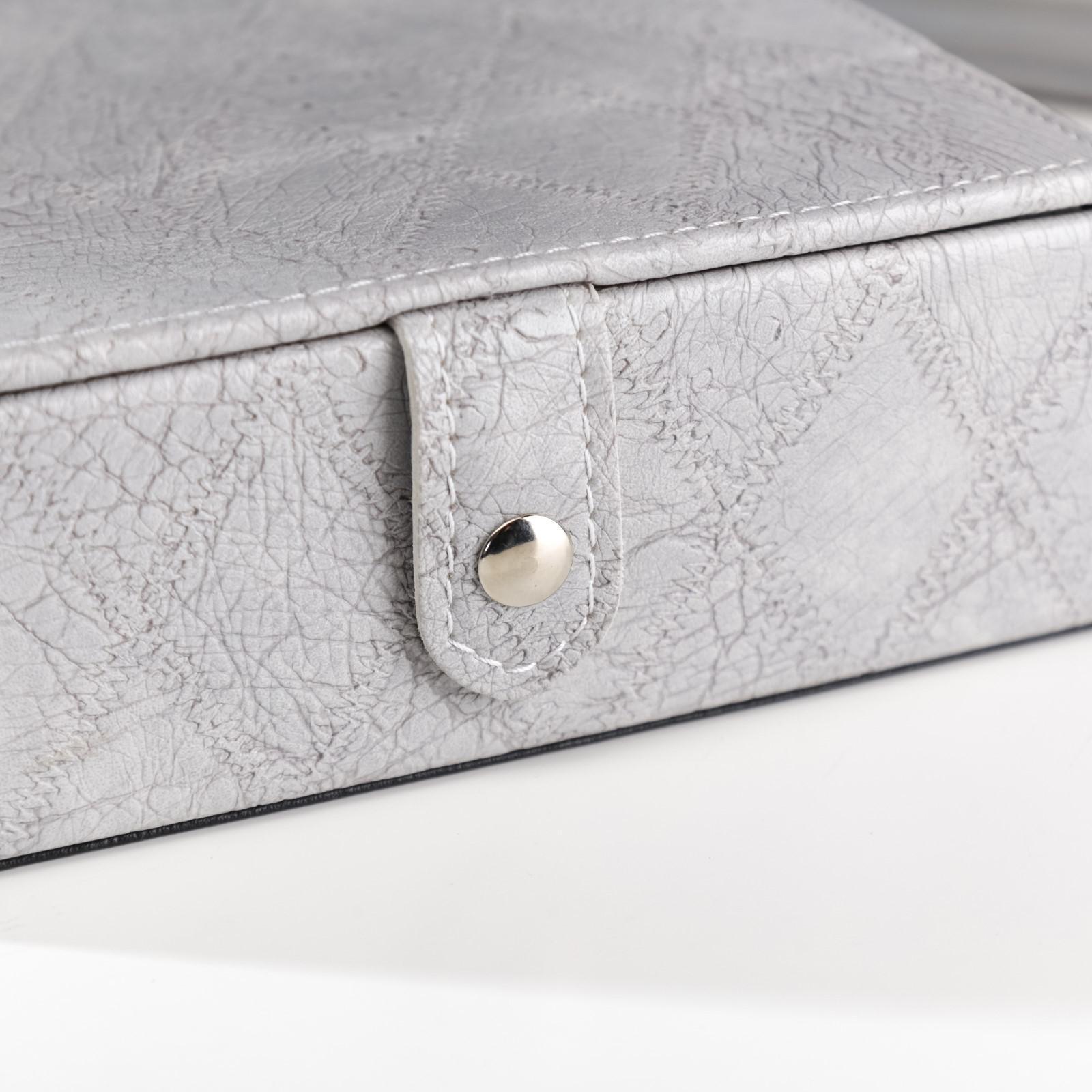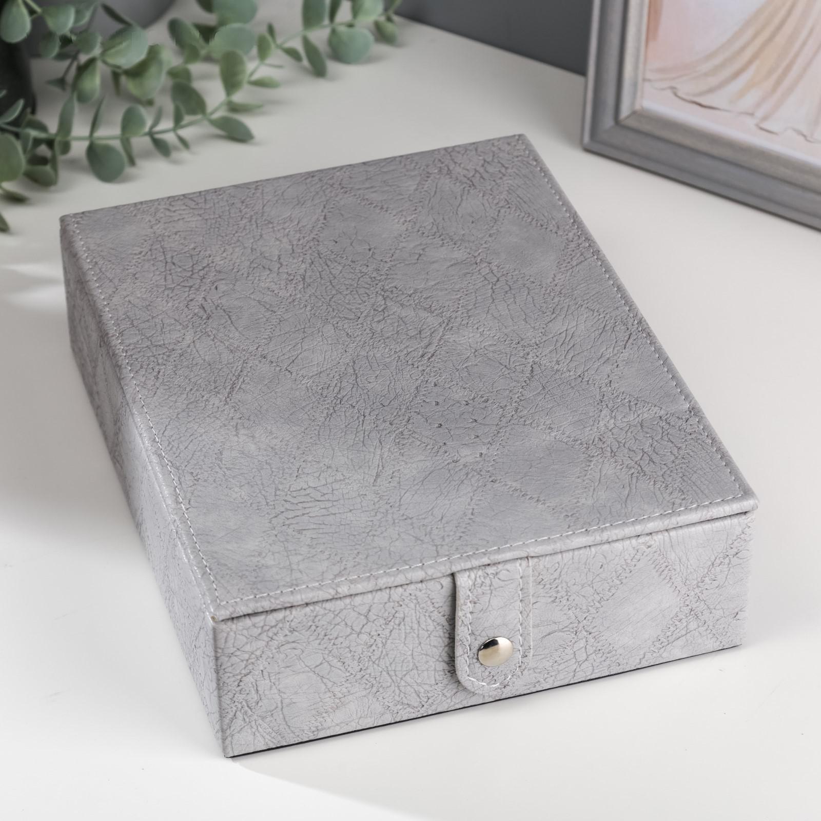 Шкатулка кожзам для украшений "Ромбики - кракелюр" серая 6х18х24 см