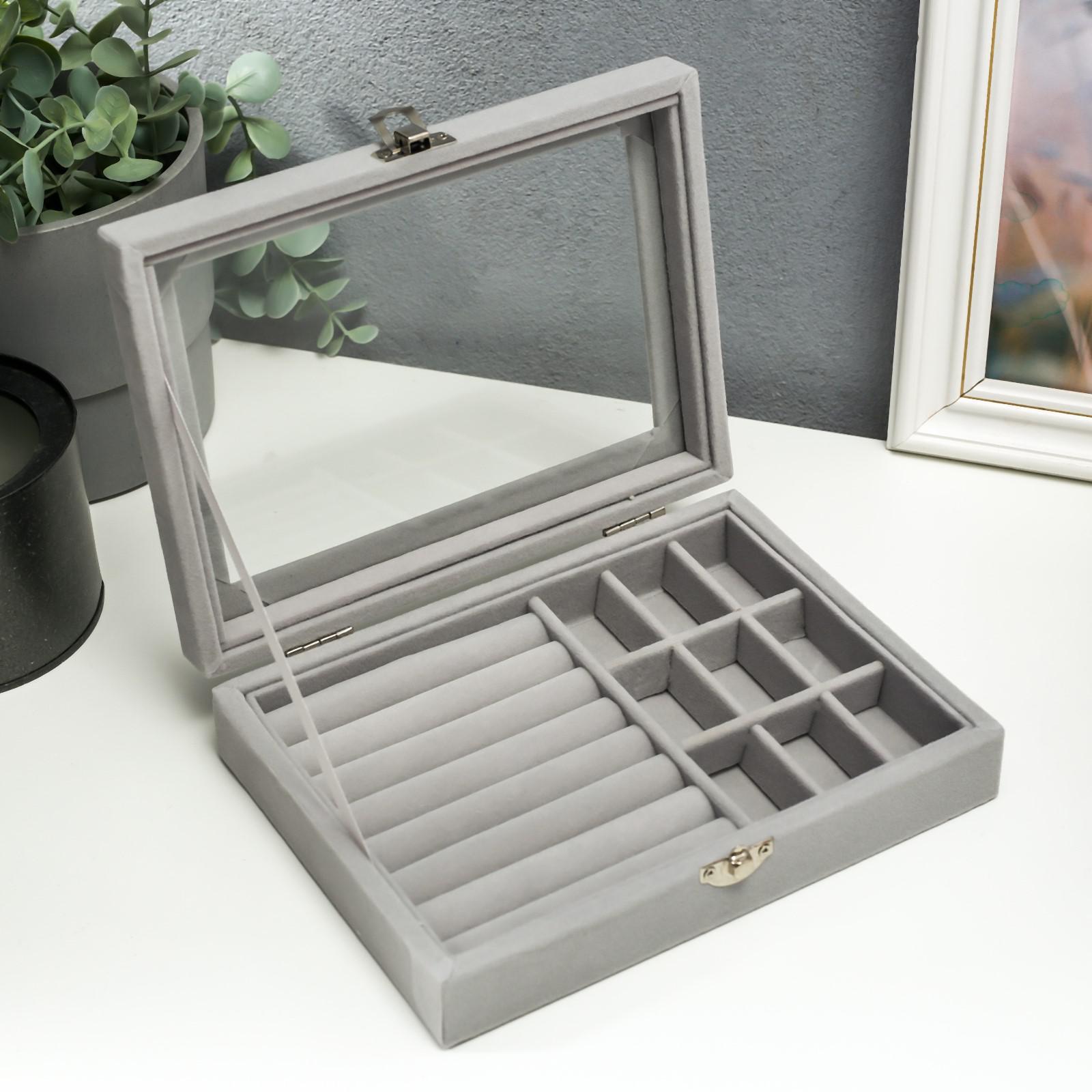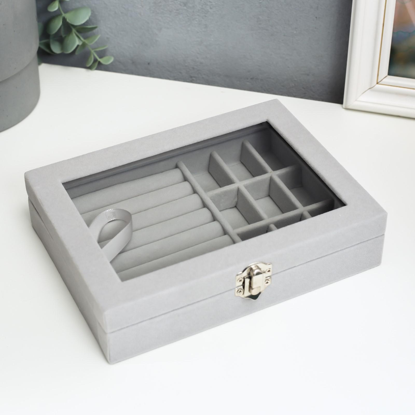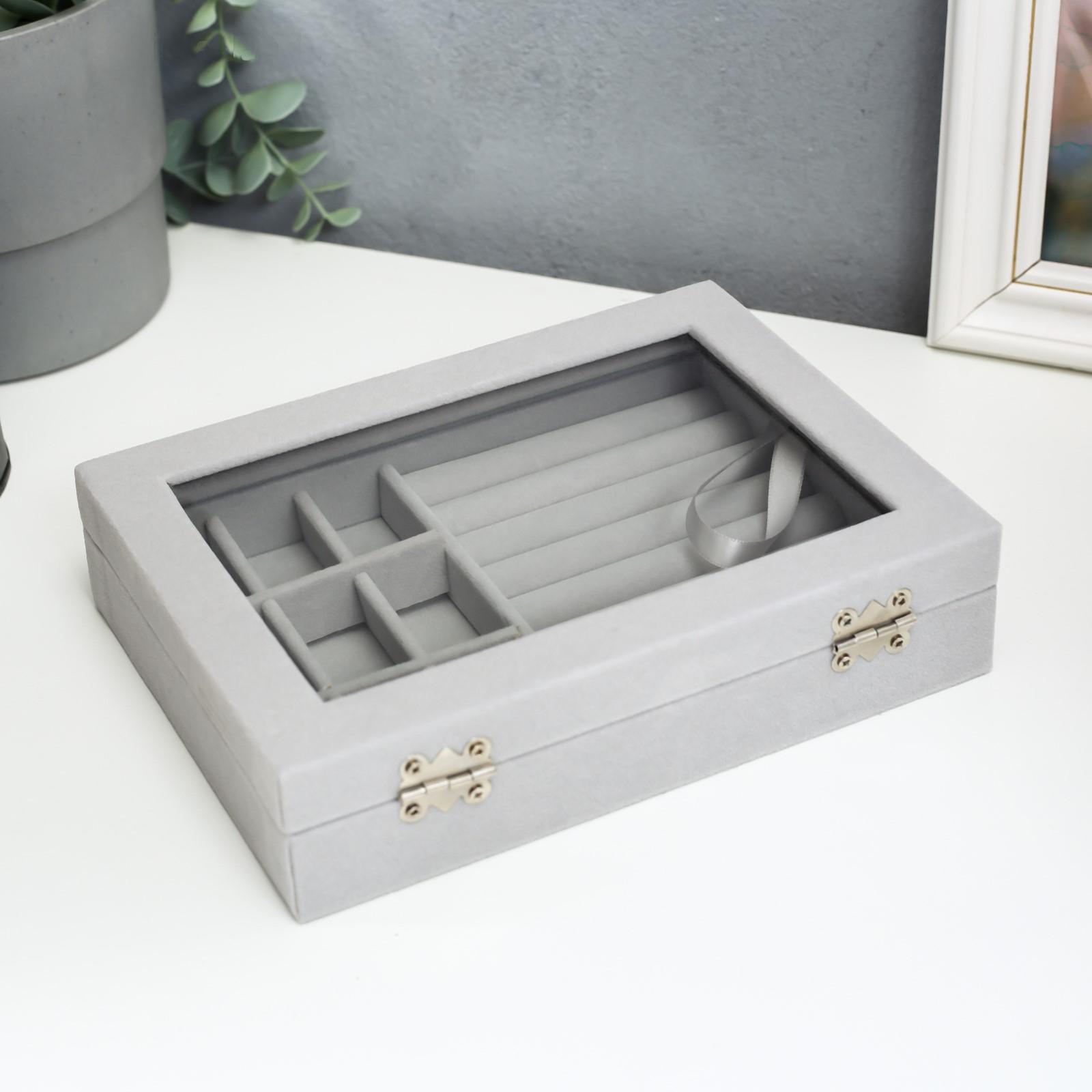 Шкатулка бархат для украшений "Серый туман" 4,5х20х15 см