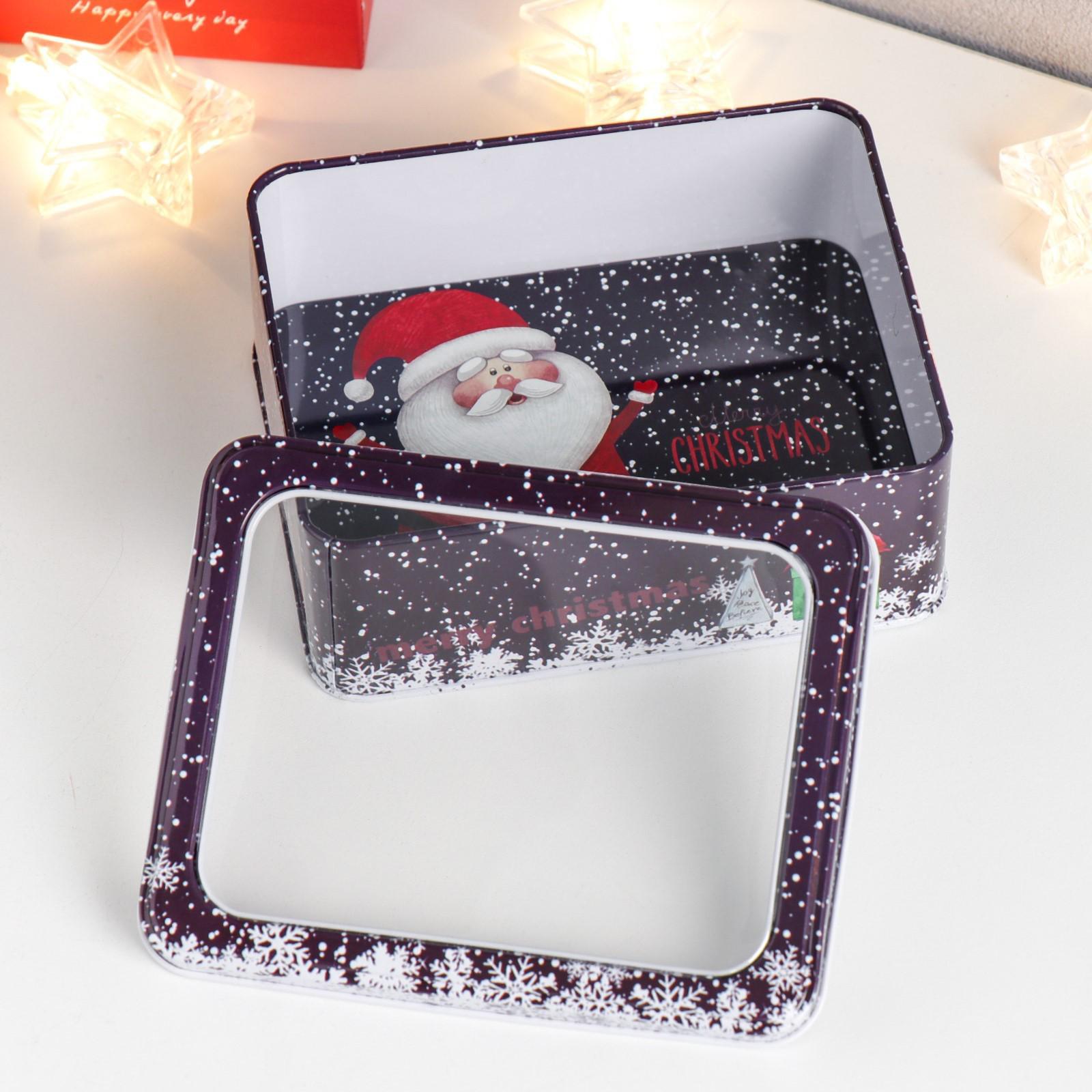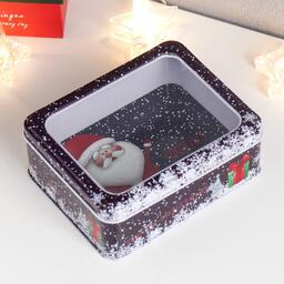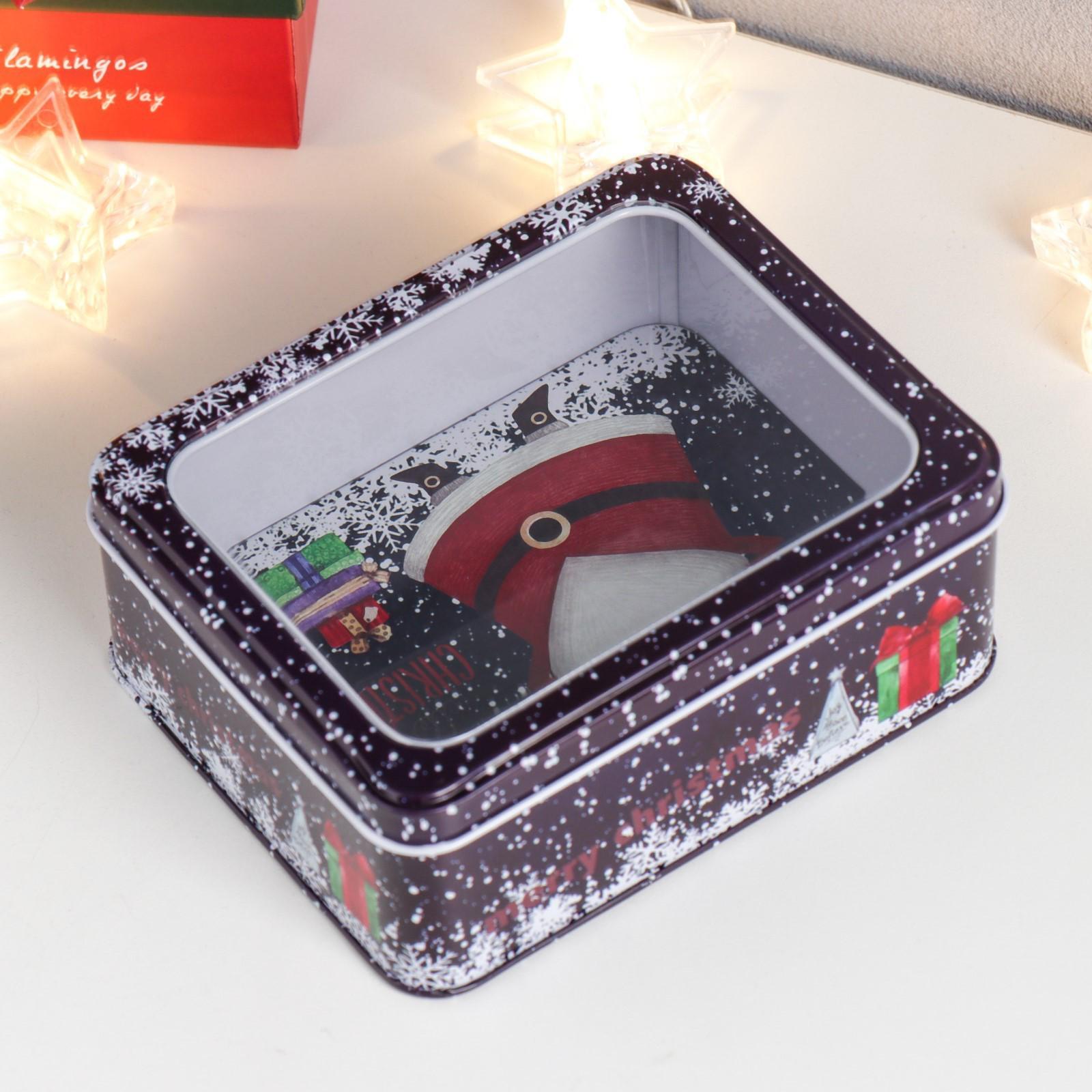 Шкатулка металл прямоугольная "Санта с подарками в снегу" 13,5х10,5х5,2 см