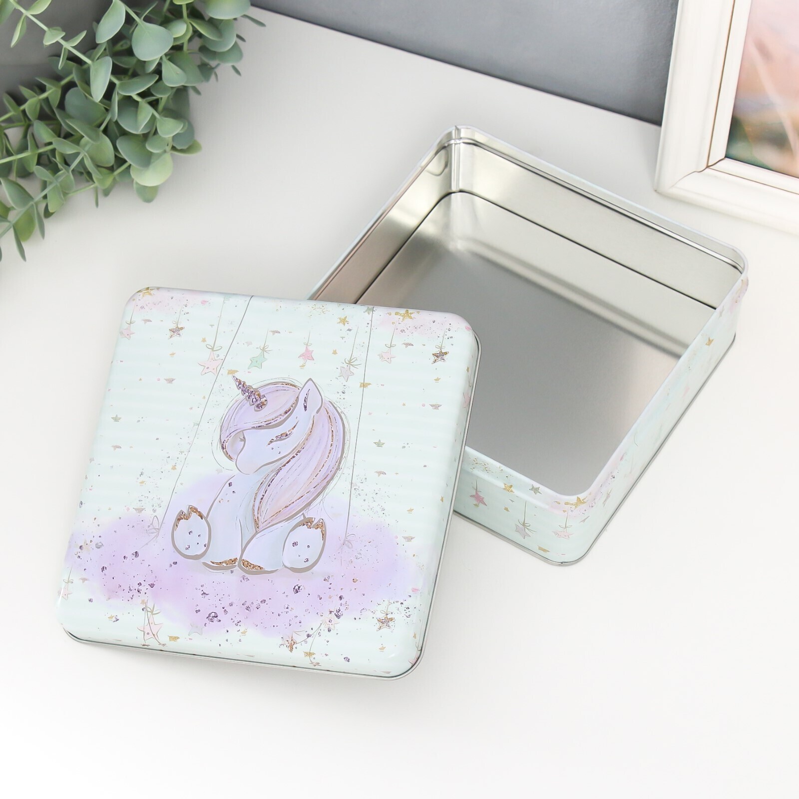 Шкатулка металл квадрат "Единорог на розовом облаке" 5,8х17х17 см