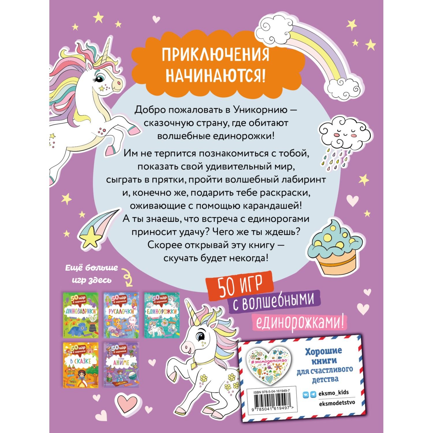 Книга 50 игр в кармане Единорожки 978-5-04-161949-7