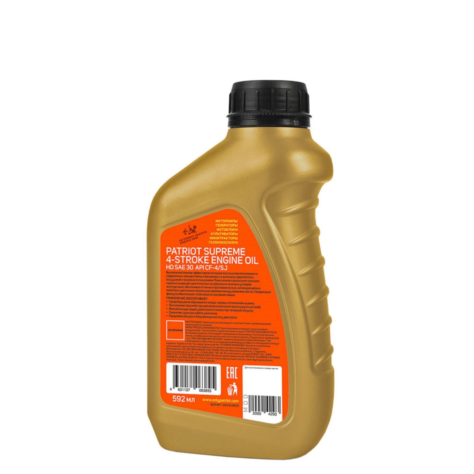 Масло PATRIOT SUPREME HD SAE 30 4T 0.592л, SAE 30, 0/+45 °С