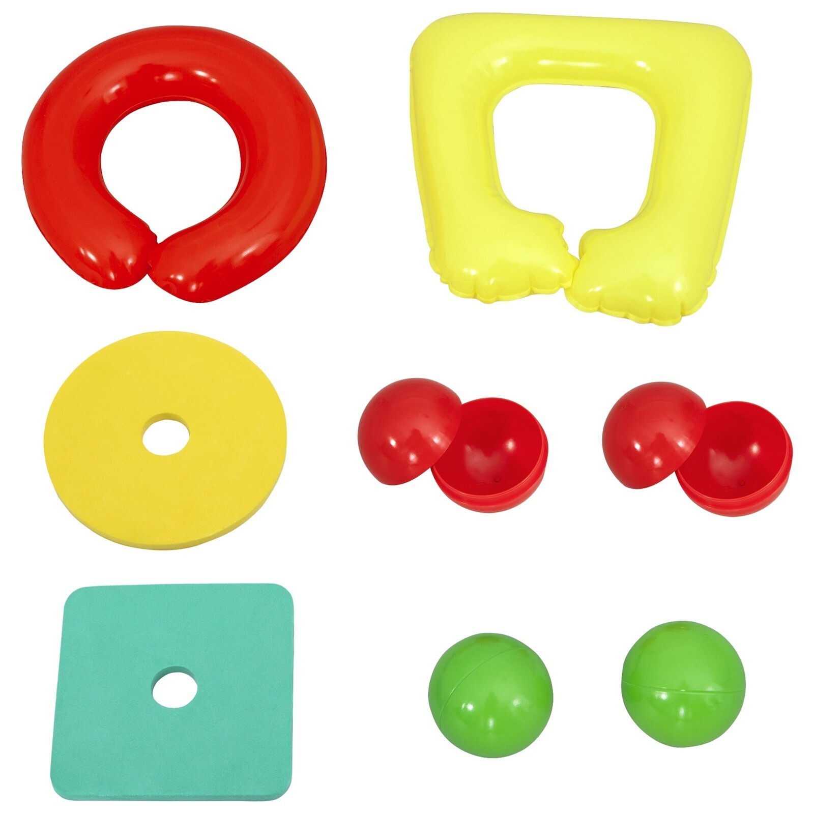 Надувной стол в виде лаборатории можно использовать дома без воды и на улице с подключением к садовому шлангу. С ранних лет малыш будет сам ставить эксперименты: проверять, какие игрушки остаются на поверхности, какие уходят под воду.