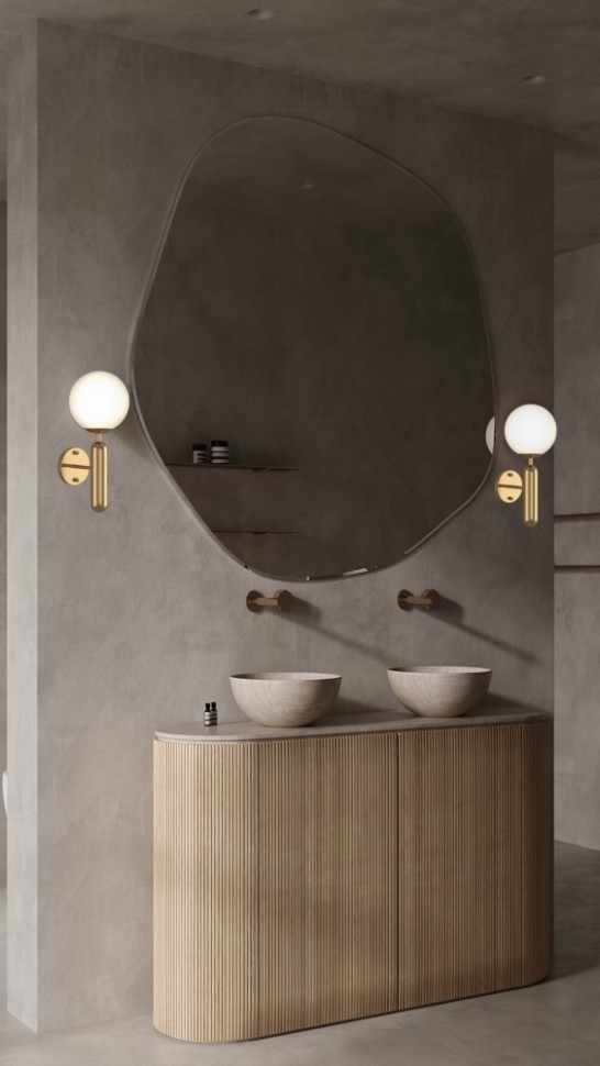 Минималистичный бра в золотом цвете с круглым плафоном из закаленного стекла. Станет отличным вариантом дополнительного освещения в спальне по обе стороны кровати, в гостиной около дивана или в прихожей. Матовый плафон мягко рассеивает свет и дарит пространству комфортное свечение, создающее уют. Универсальный дизайн позволяет сочетать бра с другими элементами освещения в комнате.