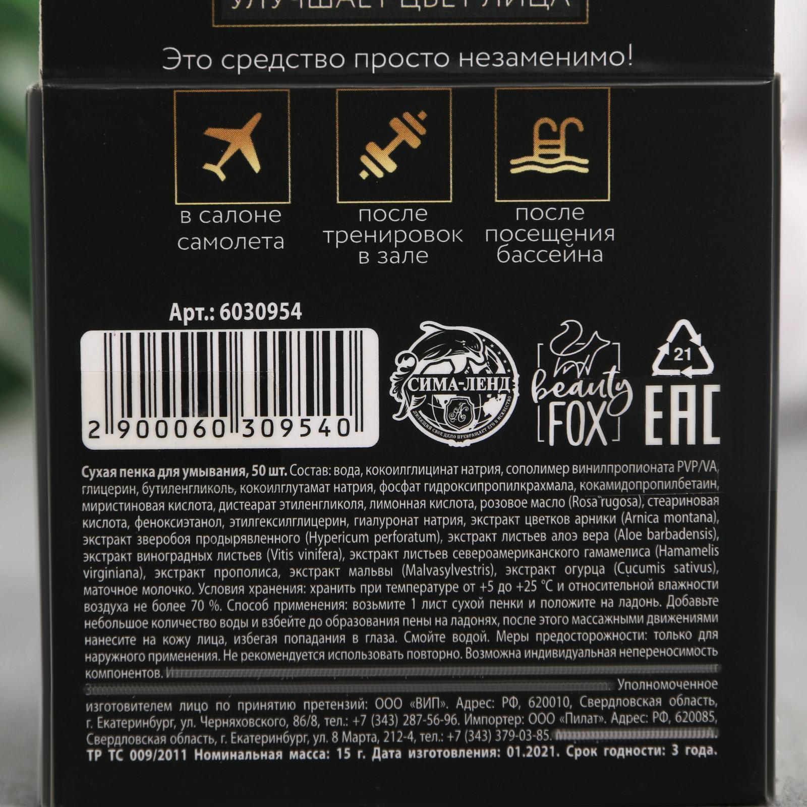 Способ применения: возьмите 1 лист сухой пенки и положите на ладонь. Добавьте небольшое количество воды и взбейте до образования пены на ладонях, после этого массажными движениями нанесите на кожу лица, избегая попадания в глаза. Смойте водой.