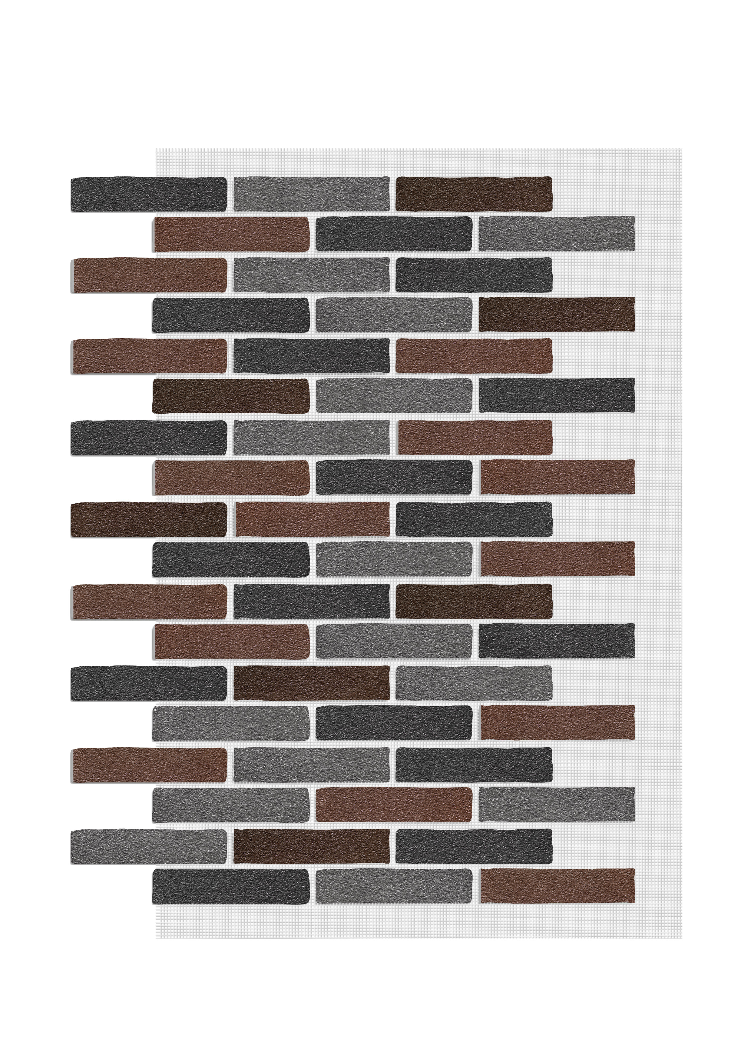 Размеры листа 1250х995 мм, полезная площадь листа - 0,9 м2.Швы кирпича затираются тем же клеем, на который вы клеите АМК, и не бойтесь испачкать кирпич - на каждом элементе есть защитная пленка, которая легко удаляется после высыхания клея и вам ничего не придется отмывать.Материал легко перевезти в обычной легковой машине, продается пачками, в пачке 9 м2, 10 листов.