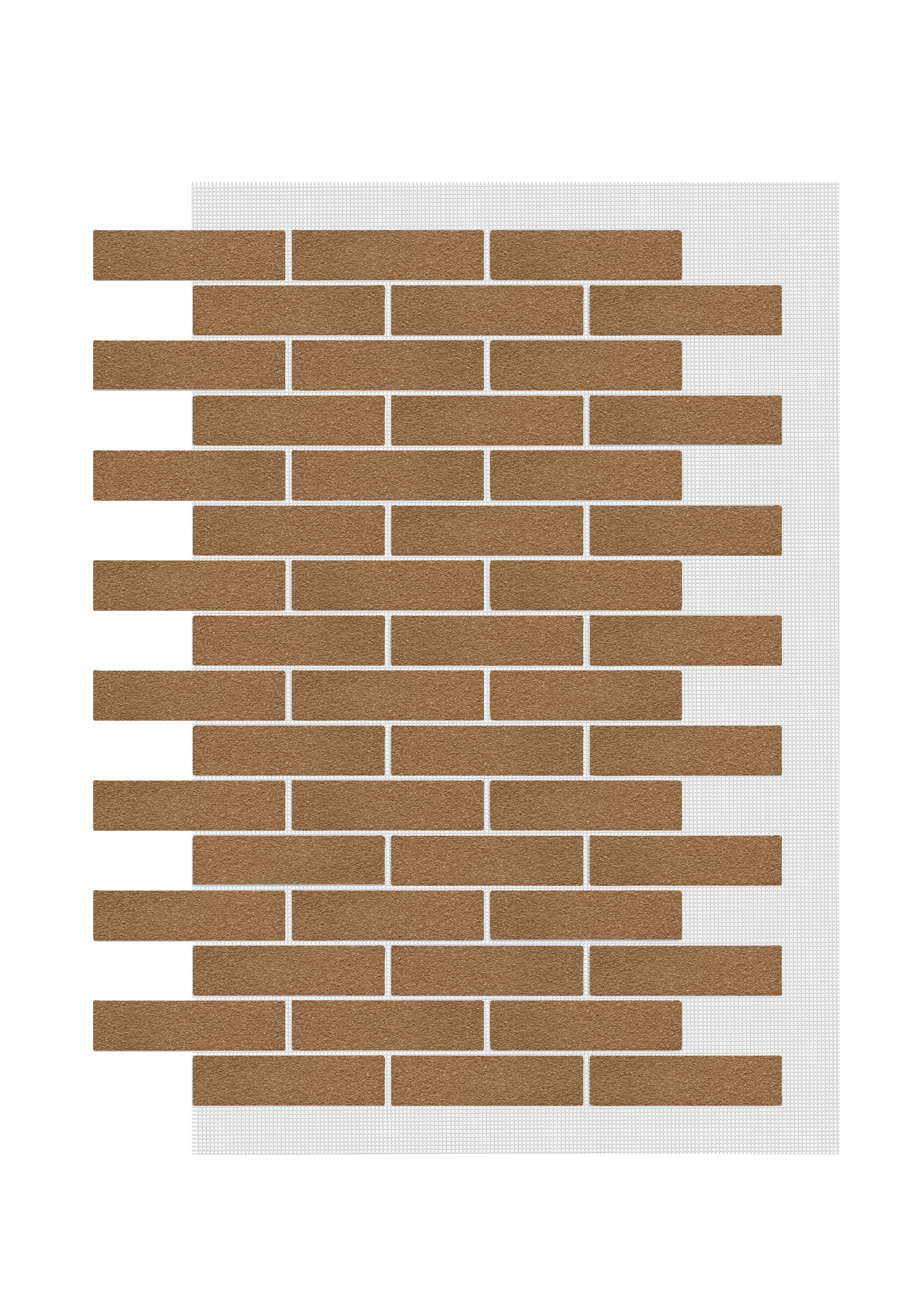 Размеры листа 1250х995 мм, полезная площадь листа - 0,9 м2.Швы кирпича затираются тем же клеем, на который вы клеите АМК, и не бойтесь испачкать кирпич - на каждом элементе есть защитная пленка, которая легко удаляется после высыхания клея и вам ничего не придется отмывать.Материал легко перевезти в обычной легковой машине, продается пачками, в пачке 9 м2, 10 листов.