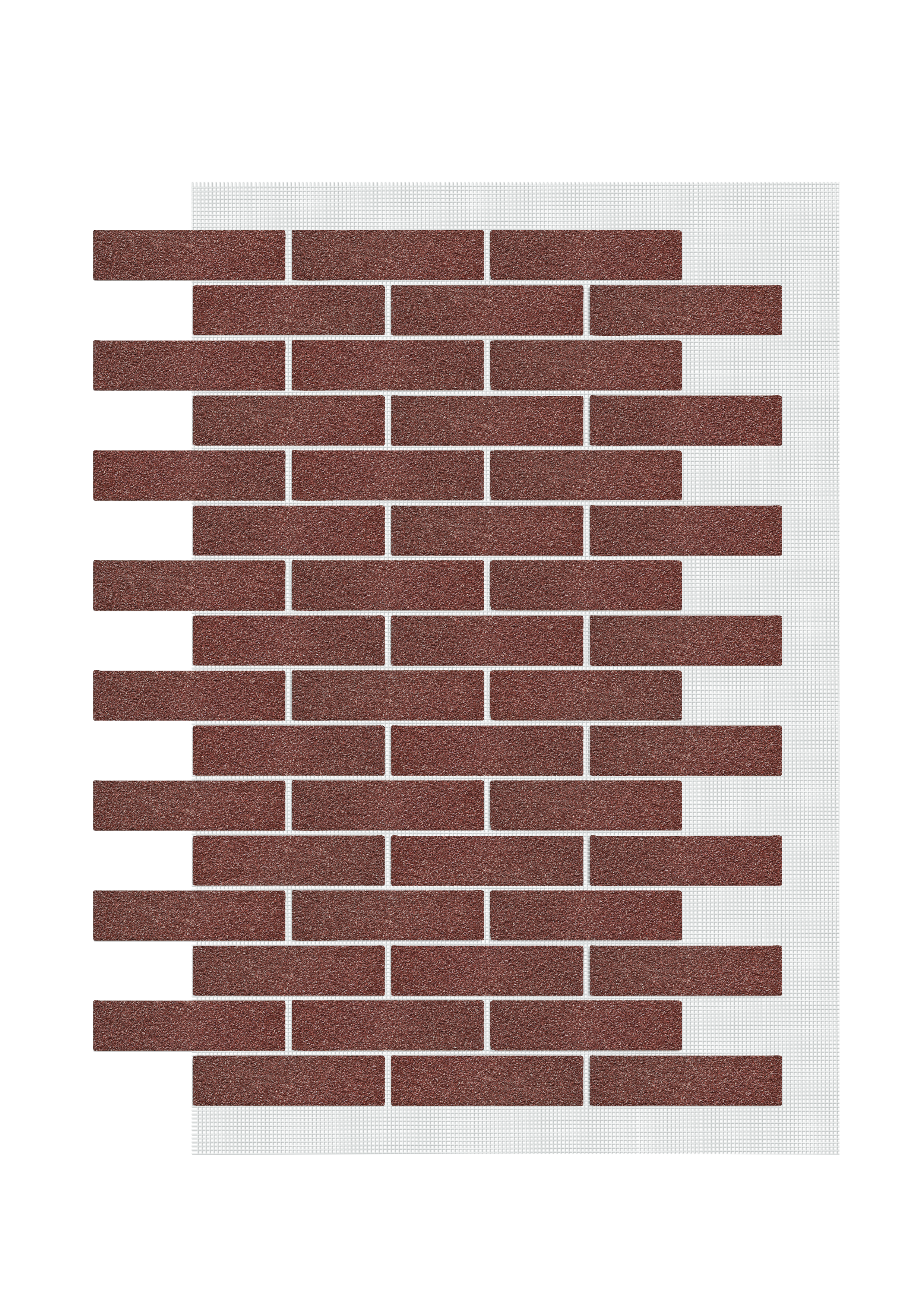 Размеры листа 1250х995 мм, полезная площадь листа - 0,9 м2.Швы кирпича затираются тем же клеем, на который вы клеите АМК, и не бойтесь испачкать кирпич - на каждом элементе есть защитная пленка, которая легко удаляется после высыхания клея и вам ничего не придется отмывать.Материал легко перевезти в обычной легковой машине, продается пачками, в пачке 9 м2, 10 листов.