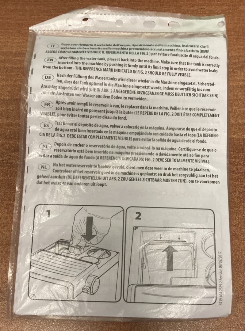Комплектность: кофемашина, ложка, рожок, инструкция, коробка.