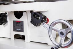 - Высота столов легко регулируется посредством винтового механизма, который приводится в действие с помощью маховиков. Подающий стол может регулироваться по глубине строгания. Предусмотрена шкала для удобства настройки. Принимающий стол может смещаться только при техобслуживании оборудования;