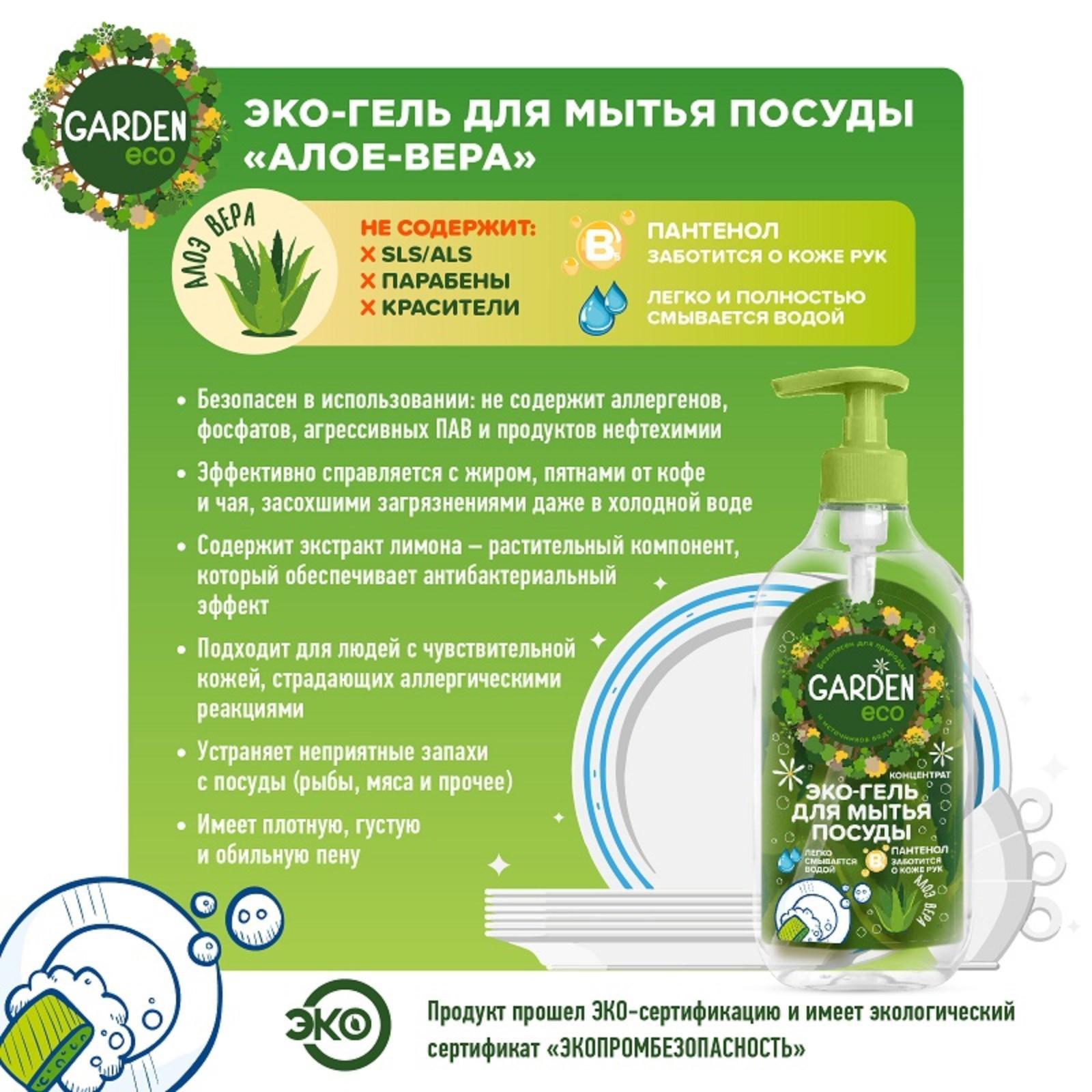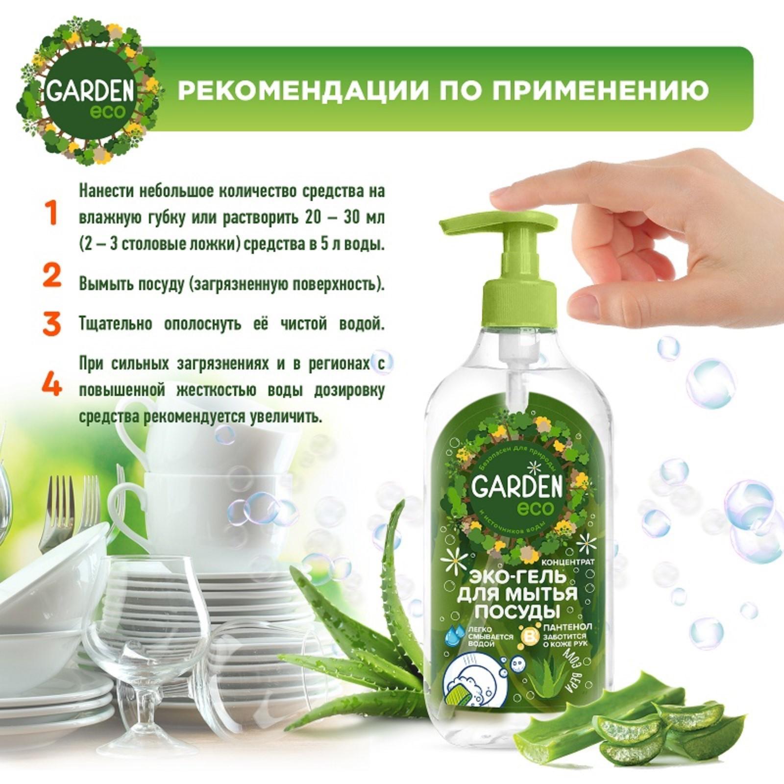 Гель-концентрат Garden для мытья посуды c алое вера, 500 мл